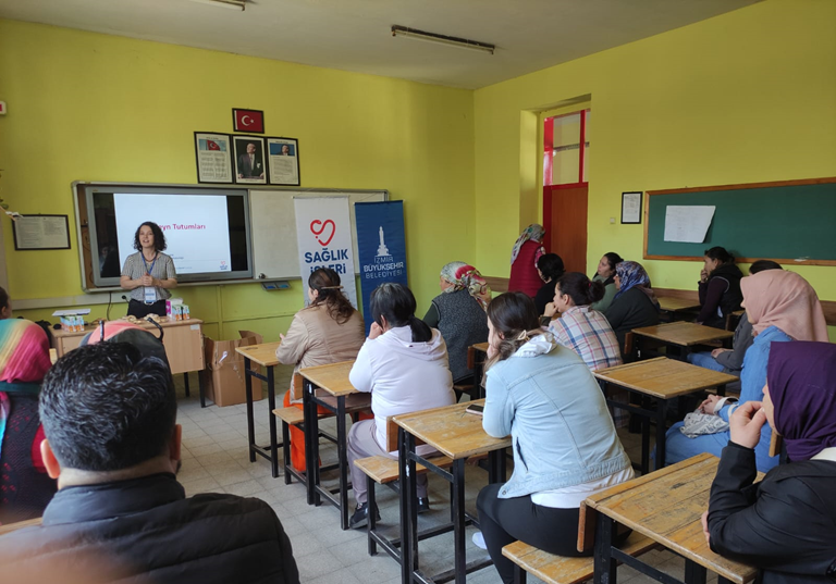 Genel sağlık, ağız ve diş sağlığı, ilkyardım, psikososyal sağlık, sağlıklı üretim ve tüketim gibi konularda düzenlediğimiz eğitimler, İzmir Büyükşehir Belediyesi’nin halkla temas ettiği tüm alanlarda eşitlik, sürdürülebilirlik ve katılımcılık temelinde yürütülmektedir. Eğitimlerde fiziksel aktivite ve sanat etkinlikleri gibi yöntemler de kullanılarak katılım artırılmakta ve etkileşimli öğrenme ortamları oluşturulmaktadır. "Tek Sağlık" ilkesi kapsamında, sağlıklı üretim ve tüketim süreçlerinde insan, hayvan ve çevre sağlığını birlikte ele alan farkındalık çalışmaları da yürütülmektedir.