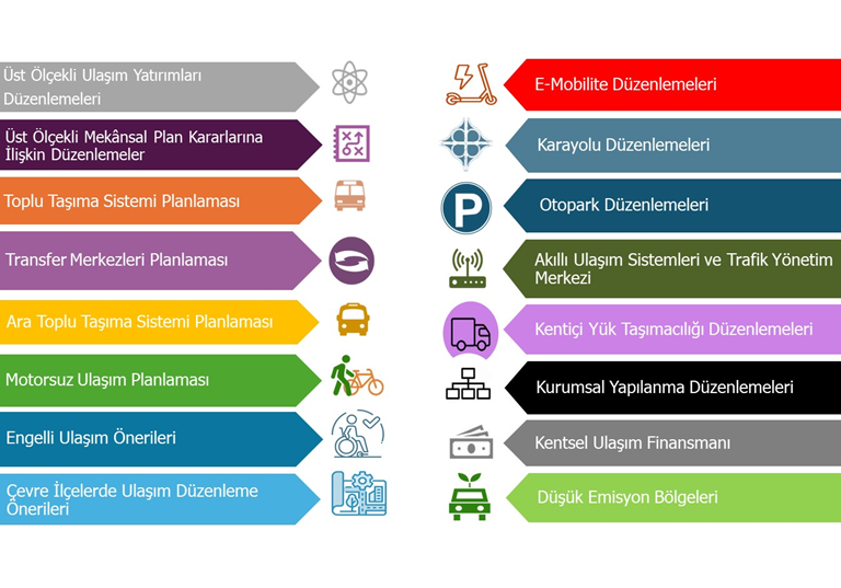 • Ulaşım politikaları, stratejileri ve eylem planlarının oluşturulması,