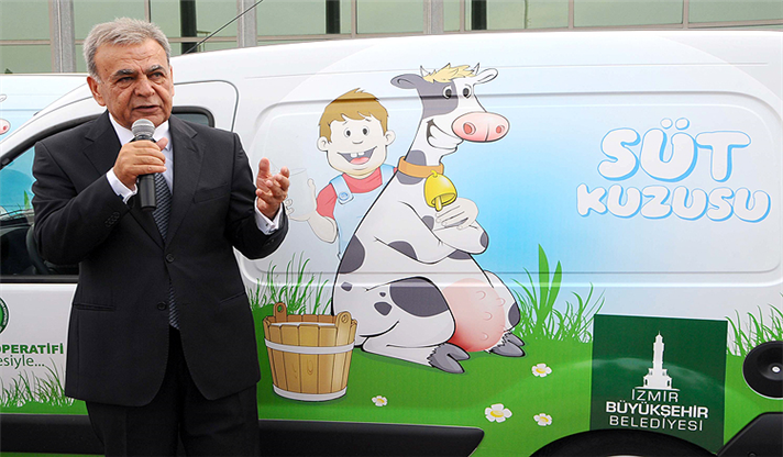 İzmir Büyükşehir Belediye Başkanı Aziz Kocaoğlu, çocukların süt içmesini sağlayarak sosyal bir proje yürüttüklerini, aynı zamanda Tire Süt Kooperatifi örneğinde olduğu gibi, tarım ürünlerini kendi bölgelerinden alarak birliklerin ve kooperatiflerin kalkınmasını da sağladıklarına dikkat çekerek, “Bu da işin ikinci boyutu. En az ilki kadar önemli. Bayındır’da çiçekçiliği, Bademler’de fidancılığı destekliyoruz. Belli bölgelerde belli projelerle kırsalı kalkındırıyoruz. 0-5 yaş süt dağıtım projesi de kentin kalkınması ve genç nesillerin sağlıklı yetişmesi için önemli bir sosyal proje” diye konuştu.