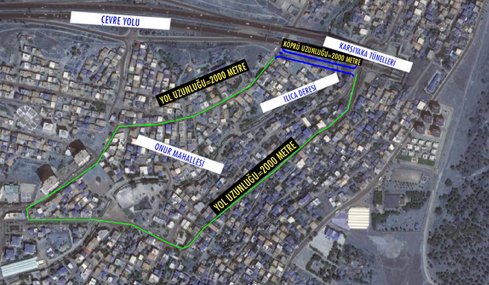 Yeni bağlantı sayesinde Onur Mahallesi’nden çevre yoluna ulaşmak isteyen vatandaşlar, halen 2 km'yi bulan yolu sadece 200 metrede aşabilecek. Toplam 190 metre uzunluğundaki ayaklı köprüde yol 2 gidiş, 2 geliş olmak üzere 4 şeritte verilecek. Ayrıca Onur Mahallesi’yle çevre yolu bağlantısını kuracak projede de yaklaşık 750 metrelik hatta, 70 metrelik istinat duvarı yapıldı ve halen 1 şerit gidiş-1 şerit geliş olan yol genişletilerek 2 şerit geliş-2 şerit gidiş olacak şekilde yeniden düzenlendi. Çalışmalar yüzde 90 oranında tamamlandı.