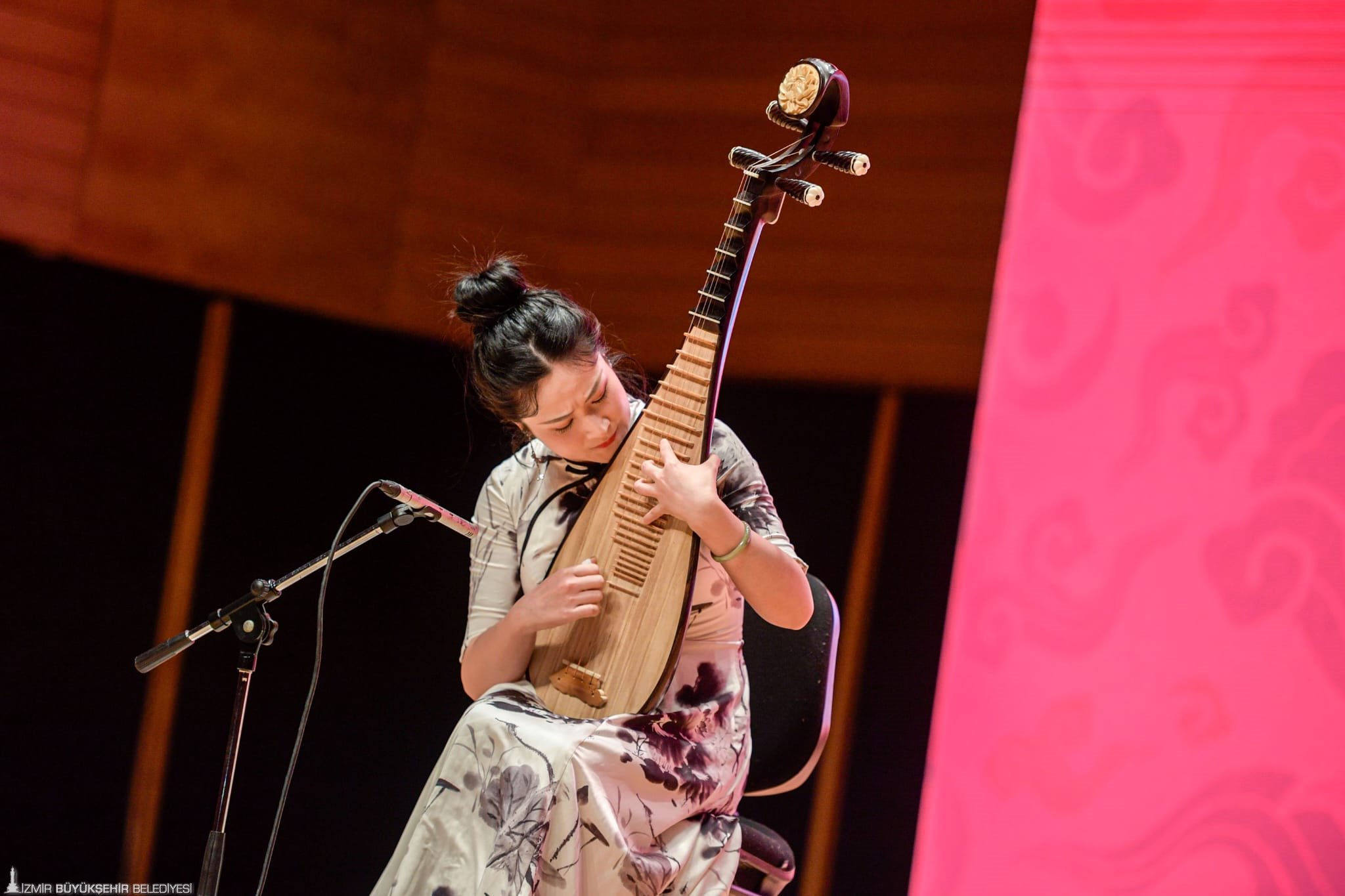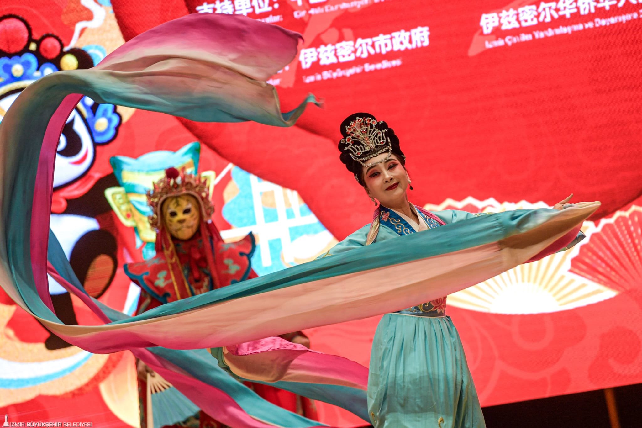 Following the speeches, the program began with the İzmir Metropolitan Municipality Band performing “Welcome to China.” The evening featured a zeybek dance performance, Hamdi Akatay’s darbuka recital, the “Dao Ma Dan” act from Chinese opera, the song “Beautiful Jasmine Flower,” a traditional tea ceremony demonstration, a water-sleeve dance accompanied by pipa, a stage magic performance, the grand puppet show “Book Art,” the short play “How Beautiful Is Humanity,” and the Sichuan Opera mask-changing performance.