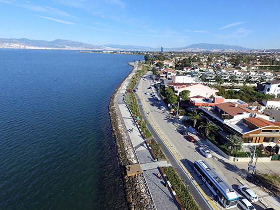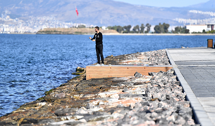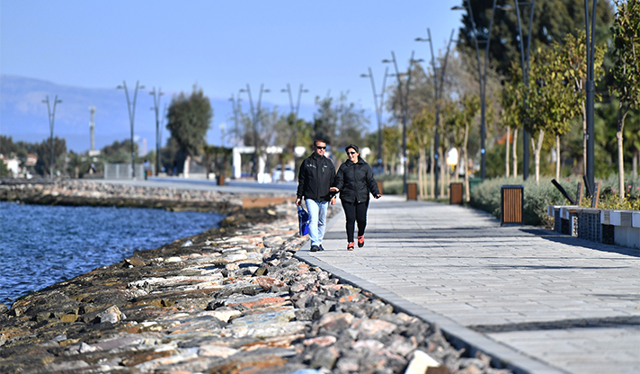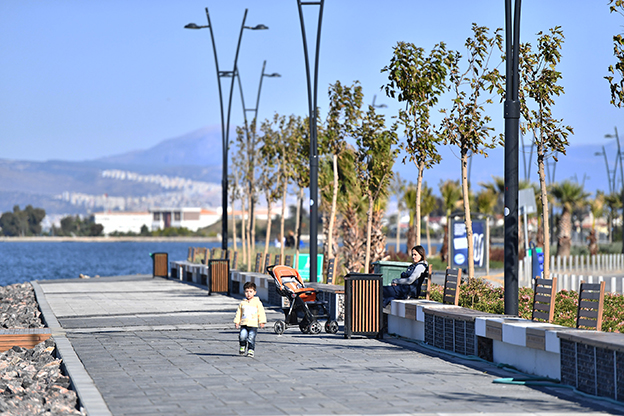 Kentte uygulanan kıyı tasarım projelerinde olduğu gibi Narlıdere-Sahilevleri Kıyı Bandı Düzenleme Projesi’nin ikinci etabında da vatandaşlar, kesintisiz uzanan yaya yollarıyla hem denizle buluşuyor hem de spor yapabiliyor.
