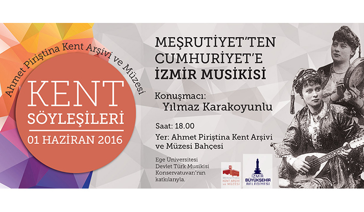 1 Haziran Çarşamba günü saat 18.00’de APİKAM bahçesinde başlayacak söyleşinin konusu “Meşrutiyet’ten Cumhuriyet’e İzmir Musikisi”.. Söyleşide Ege Üniversitesi Devlet Türk Musikisi Konservatuarı sanatçıları Türk Müziği’nden örnekler seslendirecek.