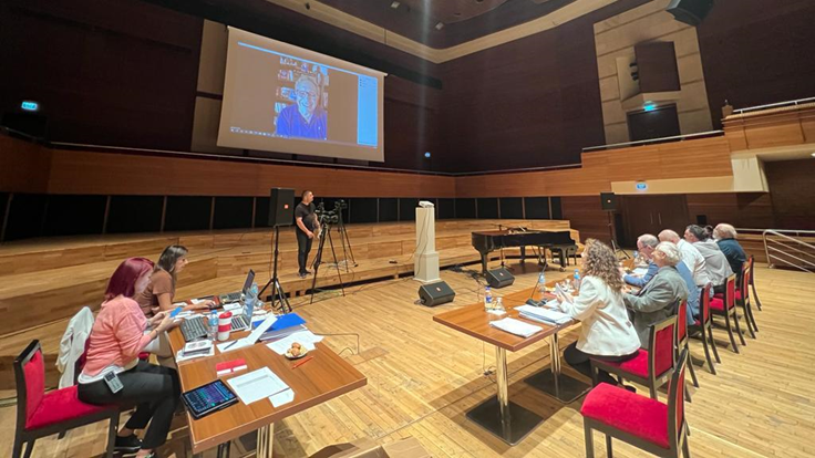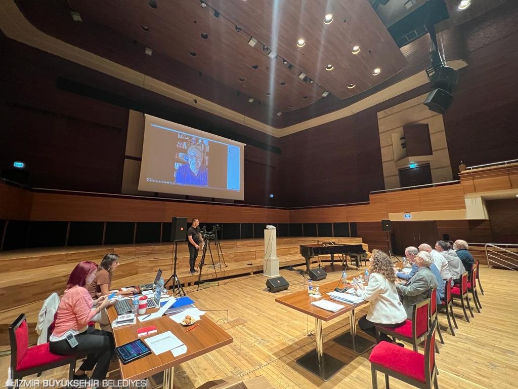 Değerlendirmeye Danışma Kurulu üyeleri eski Kültür Bakanı, 21. Dönem İzmir Milletvekili Prof. Dr. Suat Çağlayan, İzmir Milli Kütüphane Derneği Başkanı-İzmir Kent Kültürü ve Gelişimi Platformu Başkanı Ulvi Puğ ile jüri üyeleri İzmir Büyükşehir Belediyesi Genel Sekreter Yardımcısı Ertuğrul Tugay, Maltepe Üniversitesi Konservatuvarı Öğretim Görevlisi ve Besteci Turgay Erdener, Ege Üniversitesi emekli öğretim üyesi, besteci ve etnomüzikolog Prof. Dr. Ahmet Yürür, Yaşar Üniversitesi Sanat ve Tasarım Fakültesi Müzik Bölüm Başkanı ve besteci Prof. Dr. Mehmet Can Özel, Ankapella Korosu Kurucusu, Koro ve Orkestra Şefi Doç. Dr. Ahter Destan fiziki olarak katıldı. Yazar ve müzisyen Zülfü Livaneli ve Hacettepe Üniversitesi Ankara Devlet Konservatuvarı Öğretim Görevlisi ve Orkestra Şefi Prof. Dr. Rengim Gökmen çevrim içi olarak toplantıda yer aldı. Borusan İstanbul Filarmoni Orkestrası (BİFO) Orkestra Şefi Prof. Dr. Gürer Aykal ve şair, yazar ve oyuncu Sunay Akın yurt dışında olduğu için katılamadı. Yedek jüri olarak ise Ahmed Adnan Saygun Sanat Merkezi Şube Müdürü keman sanatçısı Emel Akçay Özer, Ahmed Adnan Saygun Sanat Merkezi Proje Koordinatörü besteci Çağlar Yıldırım görev aldı.