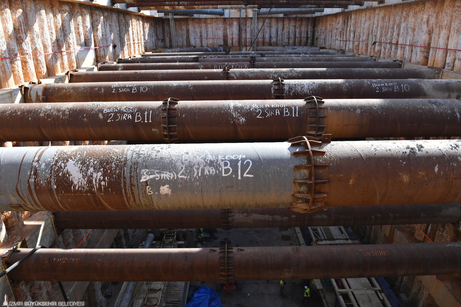İzmir Büyükşehir Belediyesi'nin kendi kaynaklarıyla inşa edeceği, Üçyol-Dokuz Eylül Üniversitesi Tınaztepe Kampusu-Çamlıkule arasında 13,5 kilometrelik hatta hizmet verecek Buca Metrosu çalışmaları tüm hızıyla sürüyor. İzmir Büyükşehir Belediye Başkan Tunç Soyer, Buca Koop İstasyonu’ndaki çalışmaları yerinde inceledi. Başkan Soyer’e İzmir Büyükşehir Belediyesi Genel Sekreter Yardımcısı Özgür Ozan Yılmaz ile İzmir Büyükşehir Belediyesi Raylı Sistemler Dairesi Başkanı Mehmet Ergenekon eşlik etti. Yerin 36 metre altında süren çalışmalar yoğun bir şekilde devam ediyor.