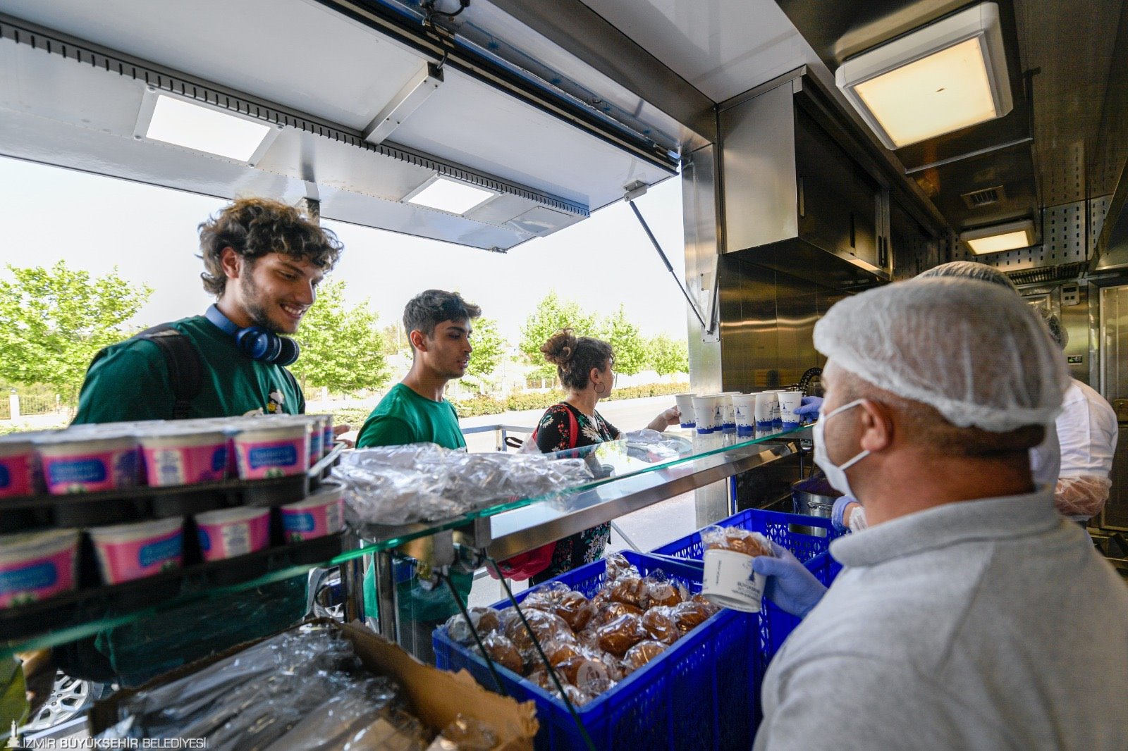 İzmir Büyükşehir Belediye Başkanı Tunç Soyer’in genç odaklı kent vizyonu doğrultusunda üniversite öğrencilerine verilen destek artarak sürüyor. Ege Üniversitesi, Dokuz Eylül Üniversitesi (DEÜ), İzmir Yüksek Teknoloji Enstitüsü (İYTE) ve Kâtip Çelebi Üniversitesi öğrencilerine sıcak yemek dağıtan İzmir Büyükşehir Belediyesi, dün akşam gençleri sürprizle karşıladı. Başkan Tunç Soyer’in sosyal medya hesaplarından yaptığı “Üniversitelerimizdeki ücretsiz yemek dağıtım noktalarımızda sizin için bir sürprizimiz olacak gençler. Bence bir uğrayın” paylaşımı sonrasında yemek noktalarında uzun kuyruklar oluştu. İzmir Büyükşehir Belediyesi, merakla sürprizi bekleyen öğrencilere yeni nesil içerik platformu GAİN’den bir aylık ücretsiz üyelik hediye etti. Giderek ağırlaşan yaşam koşulları nedeniyle geçinmekte zorlanan öğrenciler, ücretsiz yemeğin yanı sıra bir GAİN üyeliğiyle de alandan memnun ayrıldı.