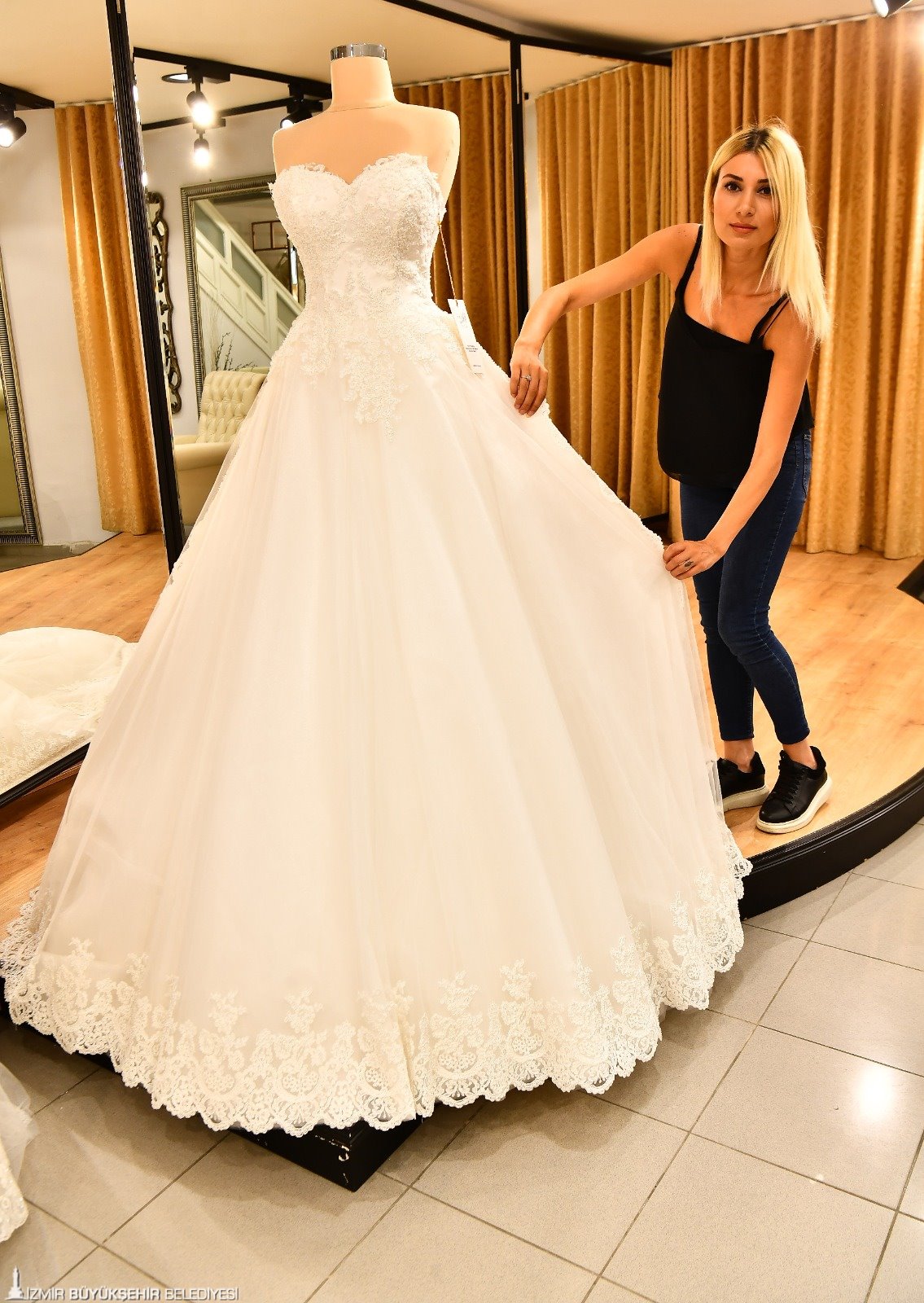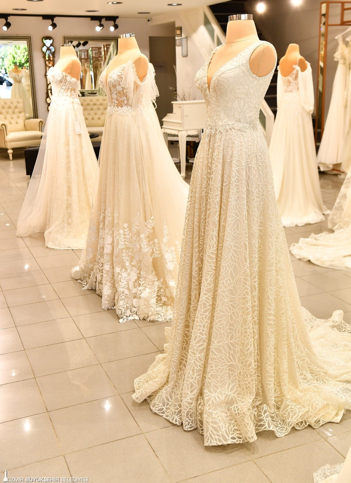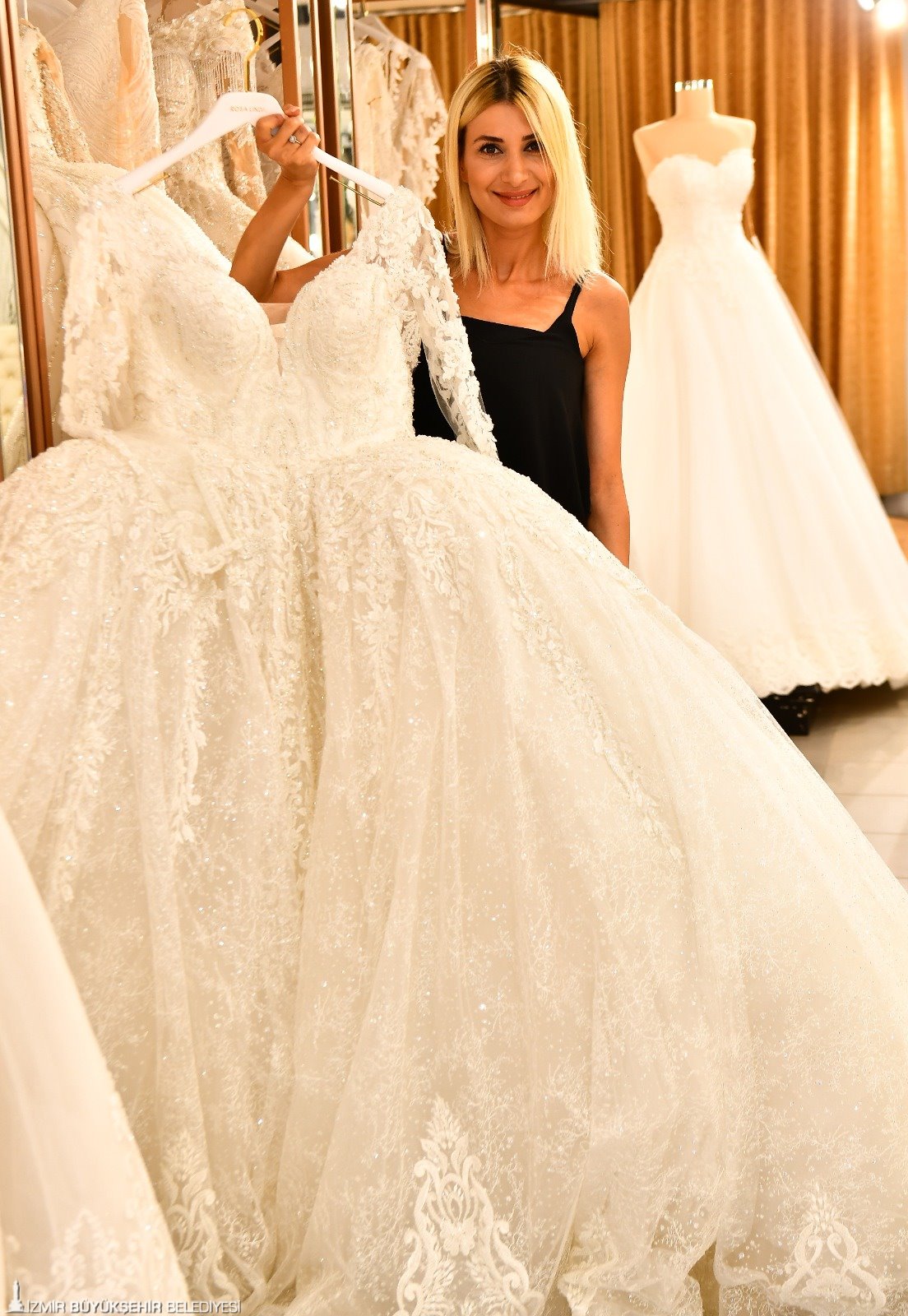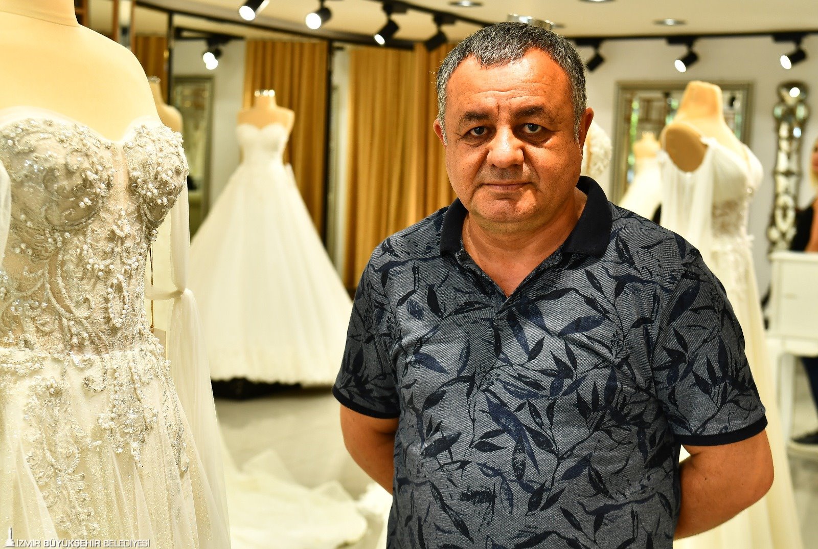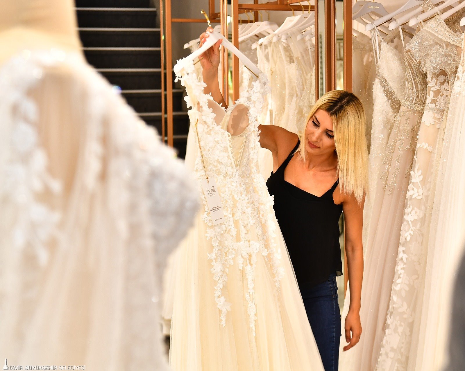 İzmir’de gelinlik, damatlık ve abiye giyim sektörünün kalbinin attığı Mimar Kemalettin Moda Merkezi’nde faaliyet gösteren iki esnaf, ihtiyacı olan gelin adaylarına ulaştırılmak üzere 50 gelinlik ile 150 nişan elbisesini Büyükşehir Belediyesi’ne teslim etti. Bağışı gerçekleştiren yardımsever ikili, amaçlarının yuva kurma hazırlığındaki genç çiftleri mutlu etmek olduğunu söyledi.