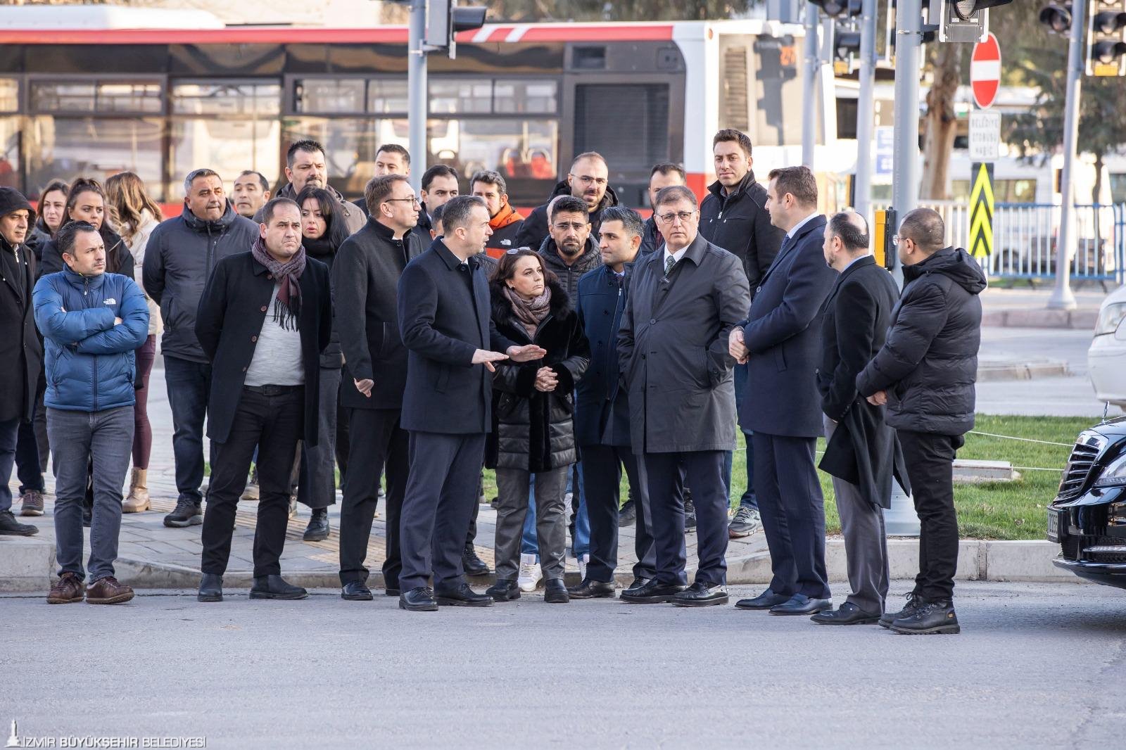 Yapımı süren Buca Onat Tüneli Projesi kapsamında tamamlanarak trafiğe açılan bağlantı yolu viyadüklerinin altında kalan İzmir Şehirlerarası Otobüs Terminali’nin giriş kapısının da bulunduğu alanda peyzaj ve çevre düzenlemesi çalışmaları büyük ölçüde tamamlandı. İzmir Büyükşehir Belediyesi’nin Fen İşleri, Yapı İşleri, Park ve Bahçeler dairesi başkanlıklarının ortaklaşa yürüttüğü projeyi yerinde inceleyen İzmir Büyükşehir Belediye Başkanı Dr. Cemil Tugay, tamamlanan ve devam eden çalışmalar hakkında bilgi aldı. Başkan Dr. Cemil Tugay’a sahada İzmir Büyükşehir Belediyesi Genel Sekreter Yardımcısı Çağatay Güç ve birim yöneticileri eşlik etti.