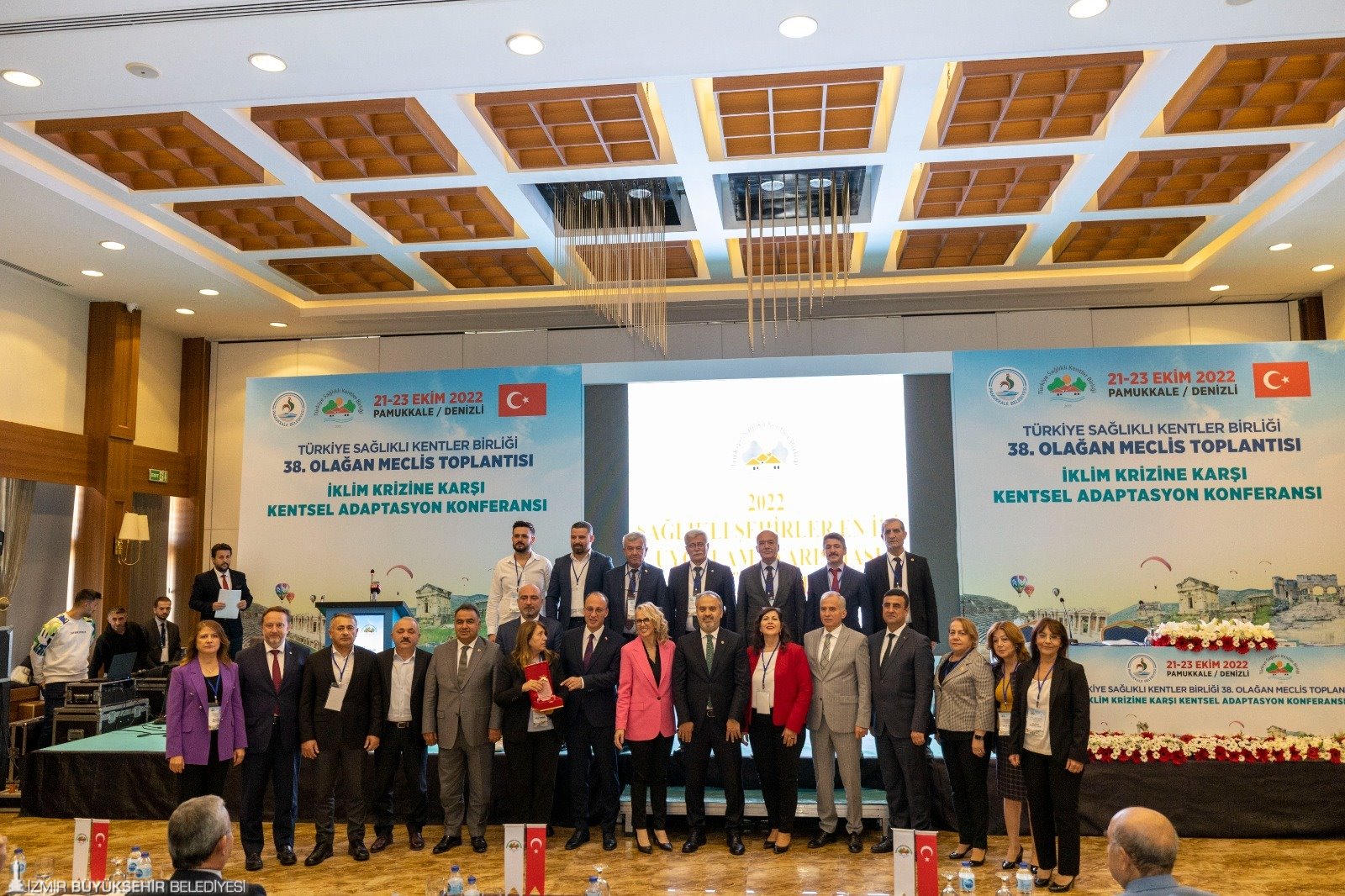 İZSU Genel Müdürü Ali Hıdır Köseoğlu Denizli’nin Pamukkale ilçesindeki Türkiye Sağlıklı Kentler Birliği’nin 38. Olağan Meclis Toplantısı kapsamında düzenlenen törende ödülü aldı.