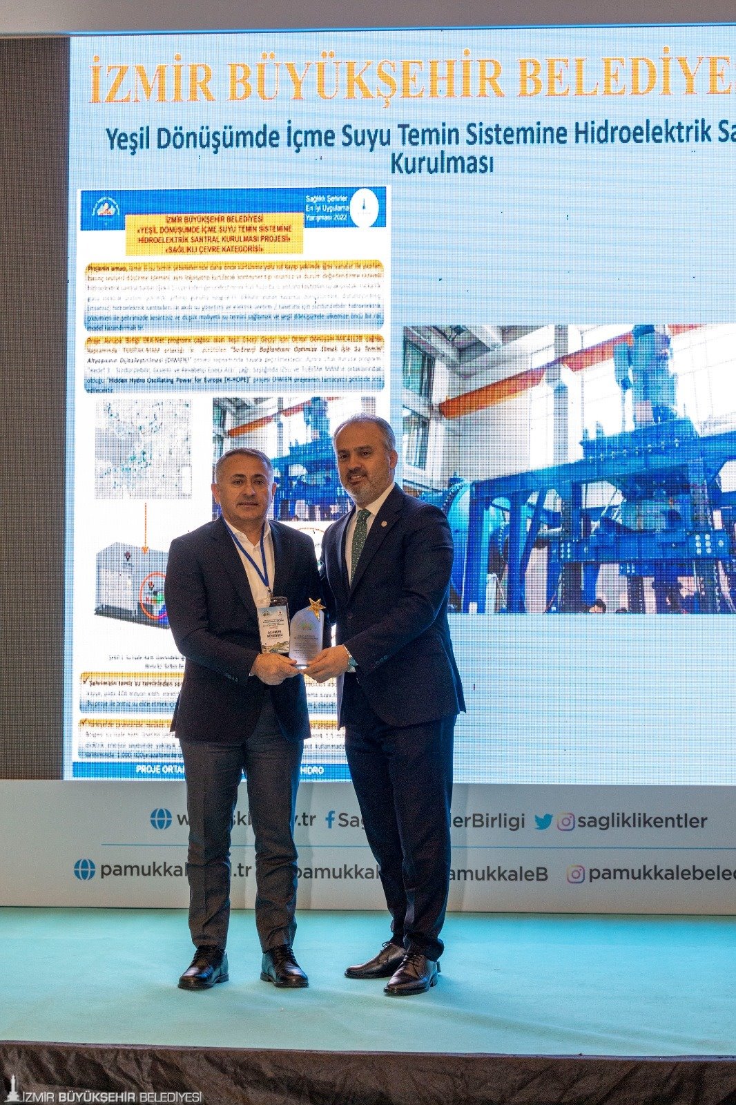 İzmir Büyükşehir Belediye Başkanı Tunç Soyer’in çevre politikası çerçevesinde çalışmalarını sürdüren İZSU Genel Müdürlüğü’nün yeşil dönüşüm projesi ulusal çapta takdir gördü. “Yeşil Dönüşümde İçme Suyu Temin Sistemine Hidroelektrik Santral Kurulması Projesi”, Türkiye Sağlıklı Kentler Birliği tarafından düzenlenen "Sağlıklı Şehirler En İyi Uygulama Yarışması”nda “Sağlıklı Çevre” kategorisinde jüri özel ödülünü almaya hak kazandı.