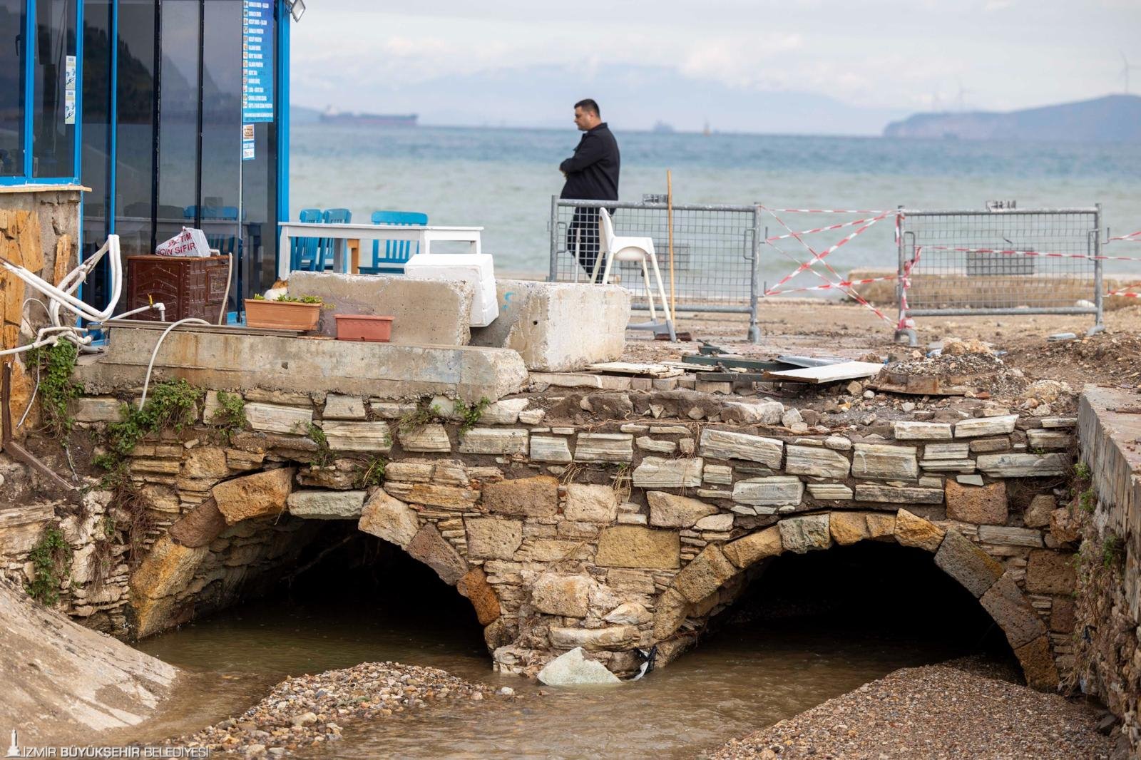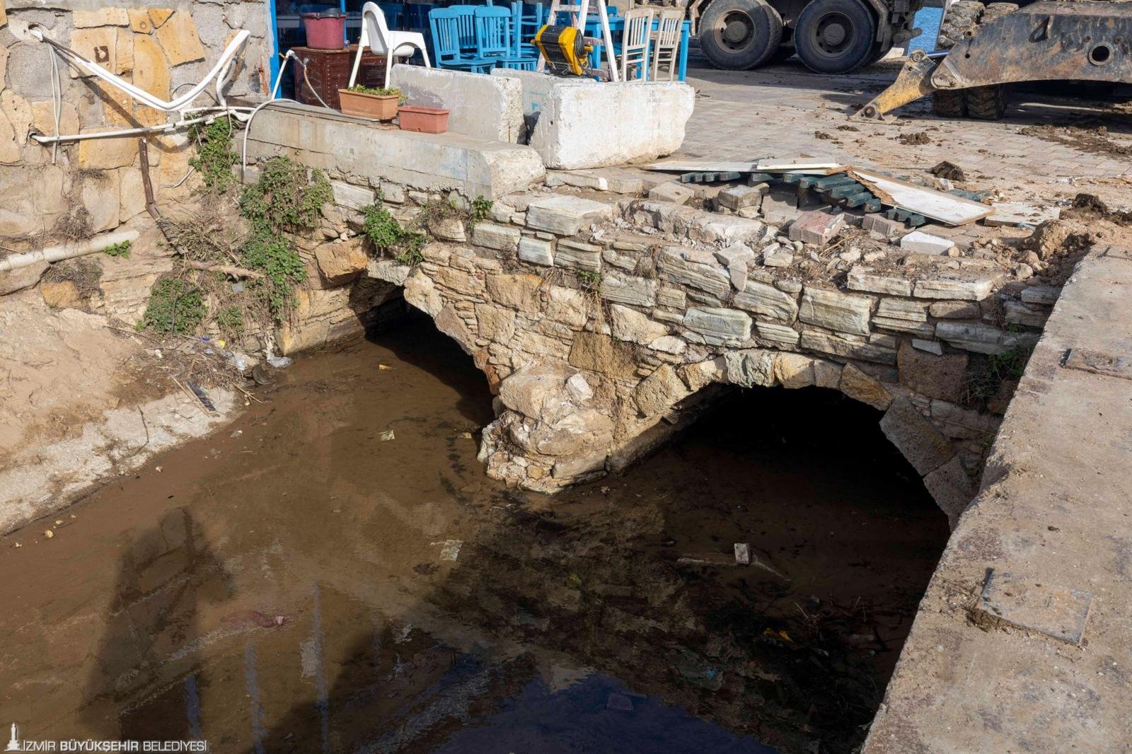 İZSU İşletmeler 1. Bölge Dairesi Başkanlığı’nda Menemen, Aliağa ve Foça’dan sorumlu Teknik Şube Müdürü Mehmet Küçükbayrak, 23 Ekim’de yalnızca iki saat içinde metrekareye yaklaşık 166 kilogram yağış düştüğünü belirterek, “Yerel halk 60-70 yıldır böyle bir yağış görmediğini söylüyor. Yaz aylarındaki büyük orman yangınından sonra ağaç gövdeleri, tomruklar ve dal parçaları Şavklı Deresi’ne sürüklenip geçişleri tıkayınca birçok noktada taşkın yaşadık. Taşkının en kritik noktası deresinin denize döküldüğü yerde bulunan Osmanlı dönemine ait tescilli taş köprü oldu. Dere yatağı belli bir kapasiteyi taşıyordu ancak tarihi köprünün yaklaşık 4 metrekarelik kesiti suyun denize ulaşmasını engelliyordu. Bu nedenle çevredeki ev ve iş yerlerinde deredeki taşmaya bağlı ciddi su baskınları yaşandı” dedi.