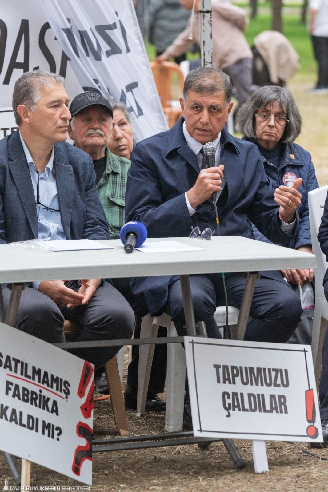 Sayıştay’ın, Vakıflar Genel Müdürlüğü’nün bütçesine yönelik yaptığı denetim raporuna da dikkat çeken İzmir Büyükşehir Belediye Başkanı Dr. Cemil Tugay, “Raporda, Vakıflar Genel Müdürlüğü’nün 9 bin mülkünün kirada olduğu ancak bu kiraların tahsil edilemediği belirtiliyor. Birilerine vakıflara ait binalar veriliyor, ancak kira alınması gerekirken bu yapılmıyor. İzmir’de 3 bin 500 gayrimenkulleri var. İki hafta önce 150'sini kiraya çıkardıklarına dair ilanlar yayımlandı. Belediye bir kamu kurumudur. Vakıflar Genel Müdürlüğü ise Kültür ve Turizm Bakanlığı’na bağlı bir genel müdürlüktür. Normalde bu iki kurum arasında mülkiyet konusunda bir ihtilaf olduğunda konu mahkemeye taşınır; yargı değerlendirir ve verilen karar uygulanır. Bu olayla ilgili mahkeme süreçleri devam ediyor, henüz sonuçlanmadı. Sadece yürütmeyi durdurma ve ihtiyati tedbir kararları kaldırıldı. Hal böyleyken, Türkiye tarihinde ilk kez bir kamu kurumu, başka bir kamu kurumunun elindeki malı almak için sabah saat 05.00’te yüzlerce polisle Meslek Fabrikası’nı ablukaya aldı. Etrafı barikatlarla çevrildi, günlerce TOMA’larla önlem alındı. Belediye başkanının içeri girmesine ise izin verilmedi” dedi.