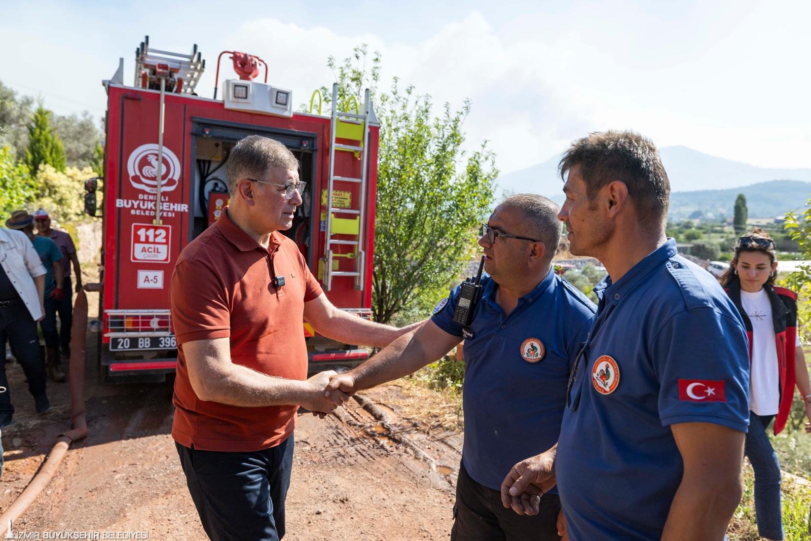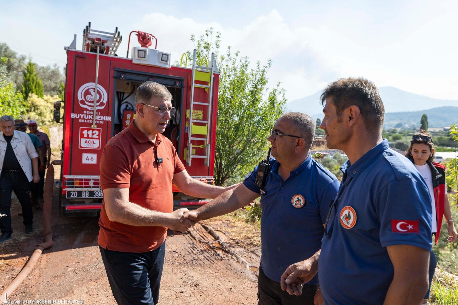 Başkan Tugay da hem İzmir İtfaiyesine hem de Kayseri, Ankara, Eskişehir, İstanbul, Muğla, Aydın, Denizli ve diğer kentlerden gelerek çalışmalara katılan ateş savaşçılarına emeklerinden dolayı teşekkür etti.