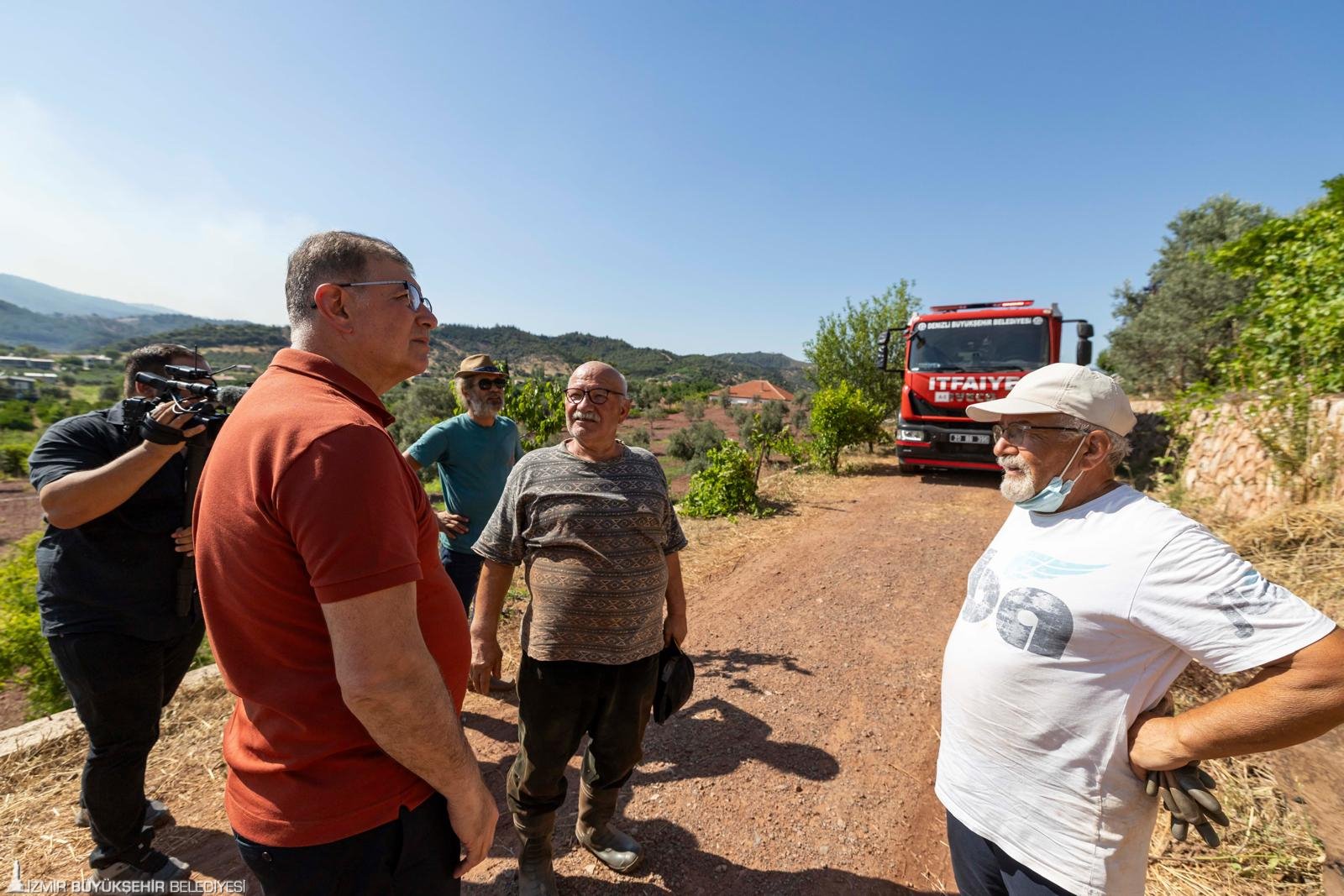 Kuyucak Muhtarı Süleyman Eslik ise İzmir Büyükşehir Belediyesi tarafından köylere dağıtılan su tankerleri sayesinde, yangının evlere ulaşmadığını belirterek, Tugay'a teşekkür etti.