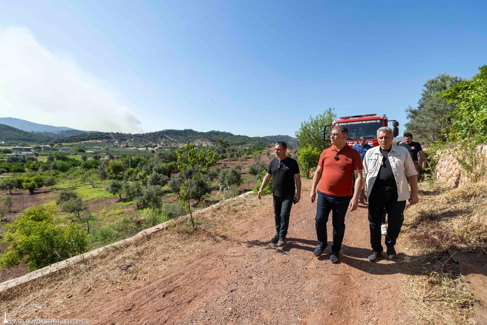 İzmir Büyükşehir Belediye Başkanı Dr. Cemil Tugay, yangının etkilediği bölgelerde incelemelerde bulundu. İzmir Büyükşehir Belediyesi Genel Sekreter Yardımcıları Çağatay Güç, İsmail Mutaf ve İzmir Büyükşehir Belediyesi İtfaiye Dairesi Başkanı Yaşar Korkmaz'dan bilgi alan Tugay, yangınların önemli ölçüde orman kaybına neden olduğunu belirterek, “Şiddetli rüzgar nedeniyle havadan müdahale de zorlaştı. O nedenle geniş bir alan zarar gördü. Bu tür durumlarda yangını durdurmak için yapılması gerekenler konusunda hepimizin yoğun şekilde kafa yorması gerekiyor” dedi.