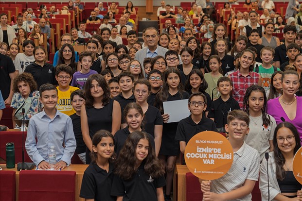 “Çocuk Dostu Kent” ilkesiyle çalışan İzmir Büyükşehir Belediyesi Çocuk Meclisi kapanış oturumu, Kültürpark 4 No’lu Hol'deki meclis toplantı salonunda düzenlendi. Programa İzmir Büyükşehir Belediyesi Başkan Vekili Dr. Zafer Levent Yıldır'ın yanı sıra Çocuk Meclisi üyeleri ile aileleri katıldı. 5 komisyon ve 198 üyesi bulunan Çocuk Meclisi'nde yıl boyunca çocuk hakları, teknoloji, çevre gibi konularda önemli çalışmalar yürütüldü. Üyeler, edindikleri deneyimleri paylaşırken, kentte söz sahibi olmaktan dolayı yaşadıkları mutlulukları anlattılar.