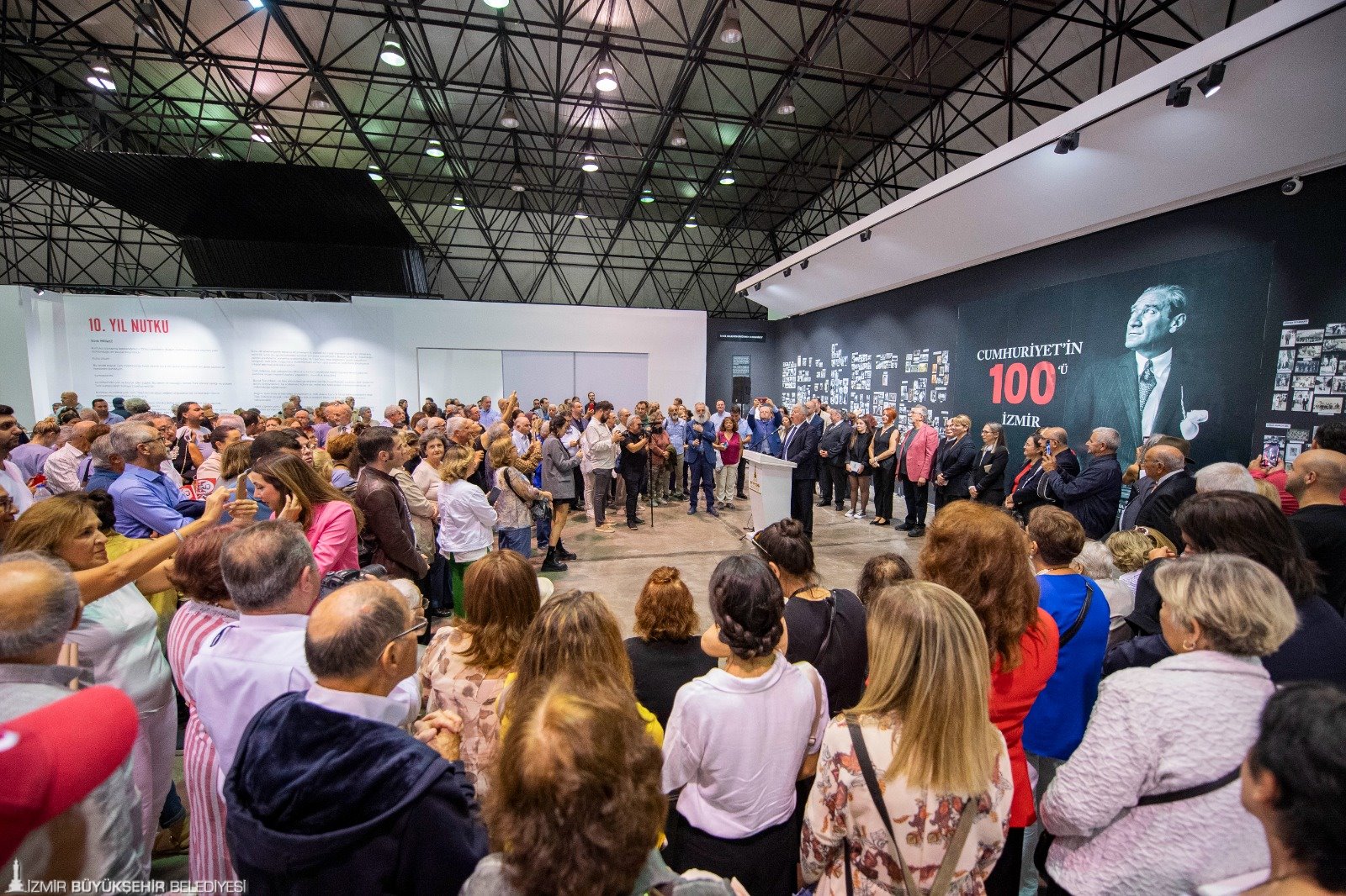Türkiye Cumhuriyeti’nin yüzüncü kuruluş yıldönümünde “Cumhuriyetin 100'ü İzmir” sergisi sanatseverlerin yoğun katılımıyla açıldı. İzmir Büyükşehir Belediyesi Başkan Vekili Mustafa Özuslu’nun katılımıyla açılan sergide İzmir'in 100 yıllık Cumhuriyet yolculuğu yedi farklı bölüm ile sanatseverlere sunuldu. Serginin küratörleri arasında ise Aylin Telef, Ayşegül Çetinkalp, Erol Özdayı, Hüseyin Erciyas, Kemal Okul, Mert Rüstem, Nur Uzakgören, Saadet Erciyas bulunuyor.