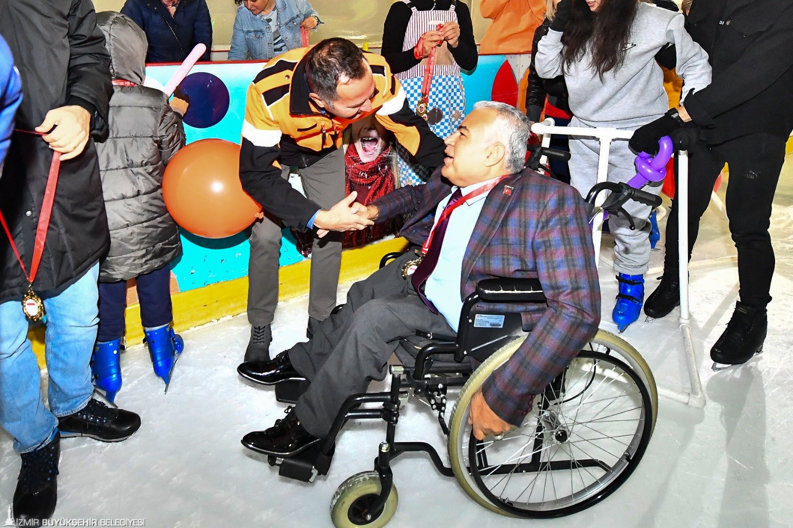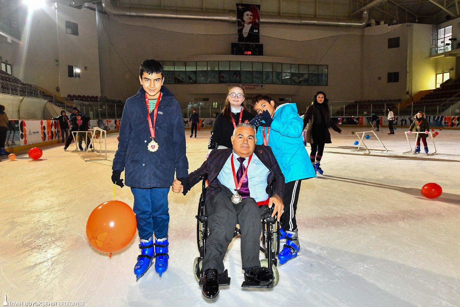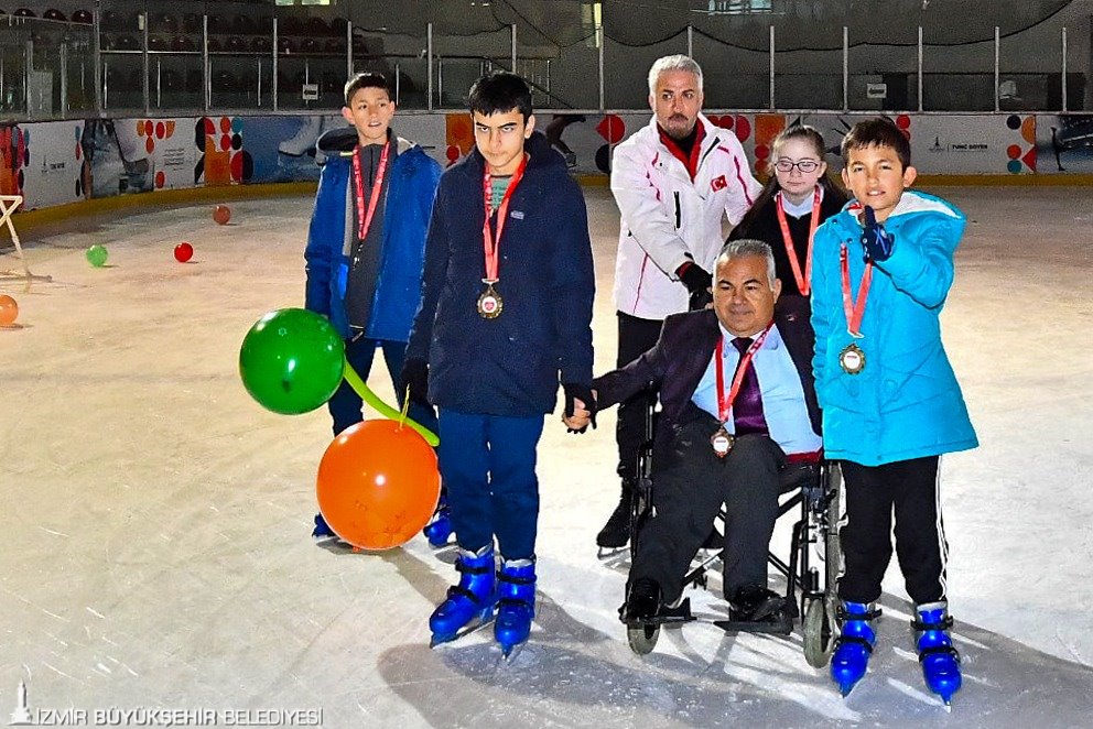 İzmir Büyükşehir Belediyesi’nin Bornova Aşık Veysel Rekreasyon alanı içinde yer alan Olimpik Buz Sporları Salonu, sadece bu spora gönül vermiş İzmirlilere değil, bedensel engellilerle, otizm ve down sendromlu gençlere de hizmet ediyor. Her perşembe günü buz üstünde engelleri kaldırarak hayallerini gerçekleştiren engelli bireylere 3 Aralık Dünya Engelliler Günü'nde madalyaları verildi. Programa İzmir Büyükşehir Belediyesi Gençlik ve Spor Hizmetleri Dairesi Başkanı Hakan Orhunbilge, antrenörler ve engelli aileleri katıldı.