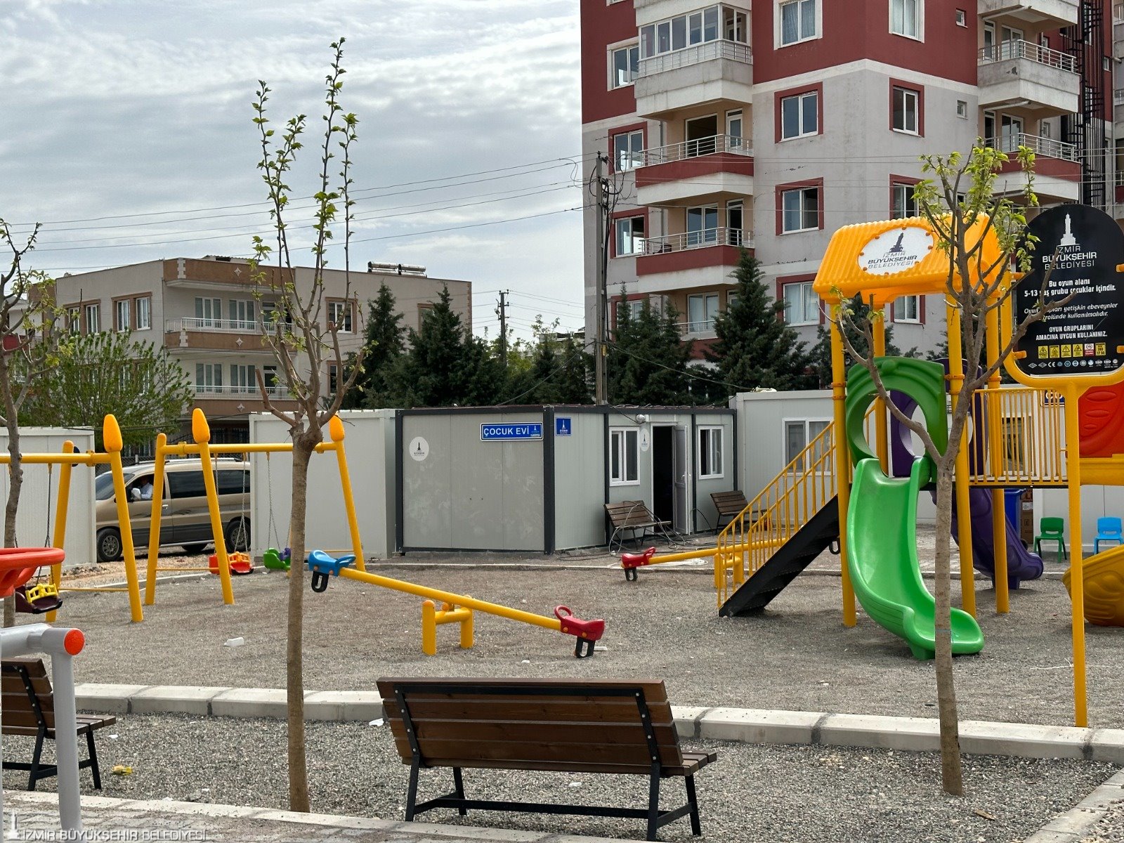 Depremzedelerin büyük bölümünün konteynerlere yerleştiğini ifade eden İzmir Büyükşehir Belediyesi Egeşehir A.Ş Genel Müdürü ve İzmir Büyükşehir Belediyesi Adıyaman Afet Koordinasyonu Sorumlu Yöneticisi Ekrem Tükenmez, “Konteyner kenti kurarken Adıyaman Tabip Odası ile birlikte hareket ettik. Tüm altyapı çalışmalarını tamamladık. Bunun yanı sıra alışılmışın dışında bir mimari tasarım uyguladık. Van Depremi’ni yaşamış bir mimar arkadaşın desteğiyle bir proje oluştu. Her konteynerin dışına yaklaşık 20 metrekare kullanım alanı bıraktık. Konteynerde yaşayan ailelerimiz burasını bahçe olarak kullanabilecek. Aileler bahçelerini yeşillendirmeye başladı” dedi.