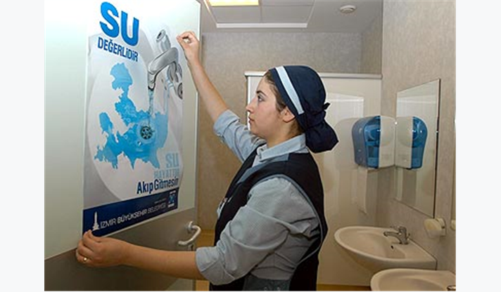 İzmir Büyükşehir Belediyesi, su tasarrufu kampanyasını tüketimin fazla olduğu okullarda ve hastanelerde yoğunlaştırdı. “Su değerlidir” adlı kampanyaya özellikle gençlerden büyük ilgi var. İzmir Büyükşehir Belediyesi tarafından su kaynaklarının etkin kullanımı amacıyla “Su değerlidir, akıp gitmesin” ve “Su hayattır, boşa harcamayın” sloganlarıyla başlatılan kampanya, toplumun tüm kesimlerine yayılıyor. Okullar, hastaneler ve toplu ulaşım araçları başta olmak üzere, her yer suyun nasıl tasarruflu kullanılması gerektiğini anlatan broşür ve çıkartmalarla donatılıyor. Su tasarrufuna ilişkin kampanyaya özellikle gençler büyük ilgi gösteriyor.