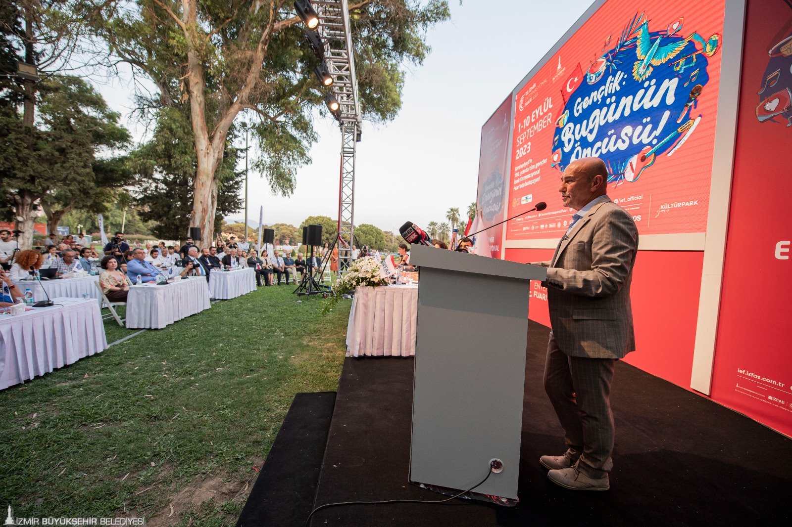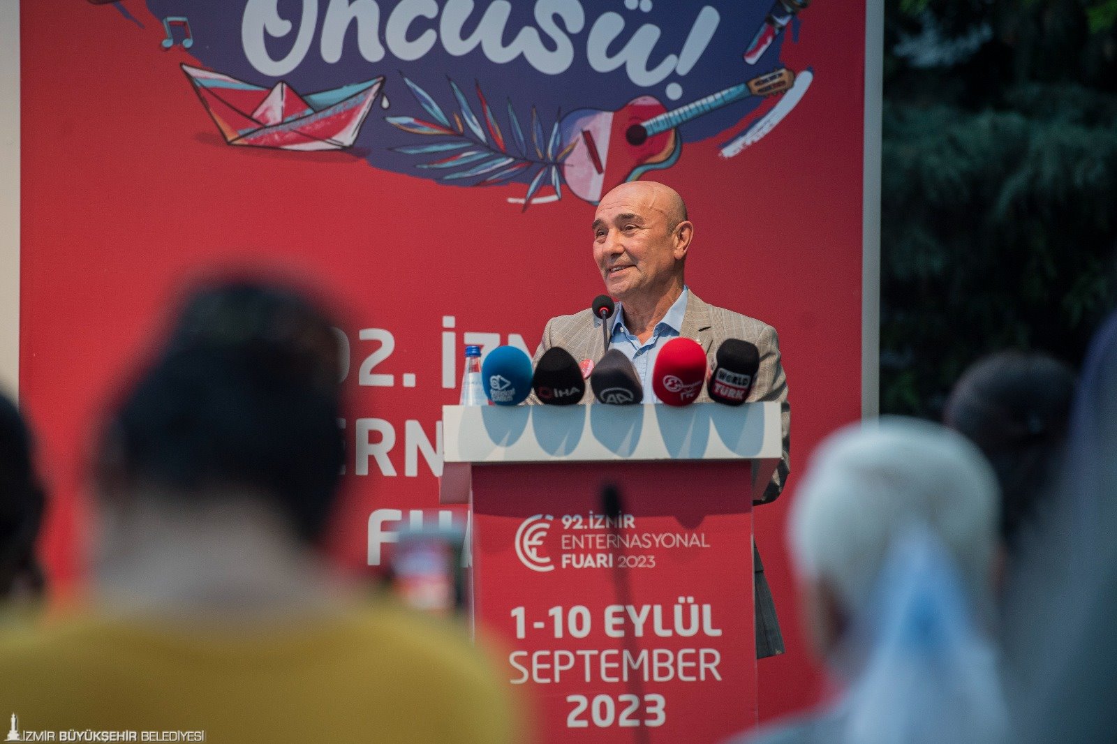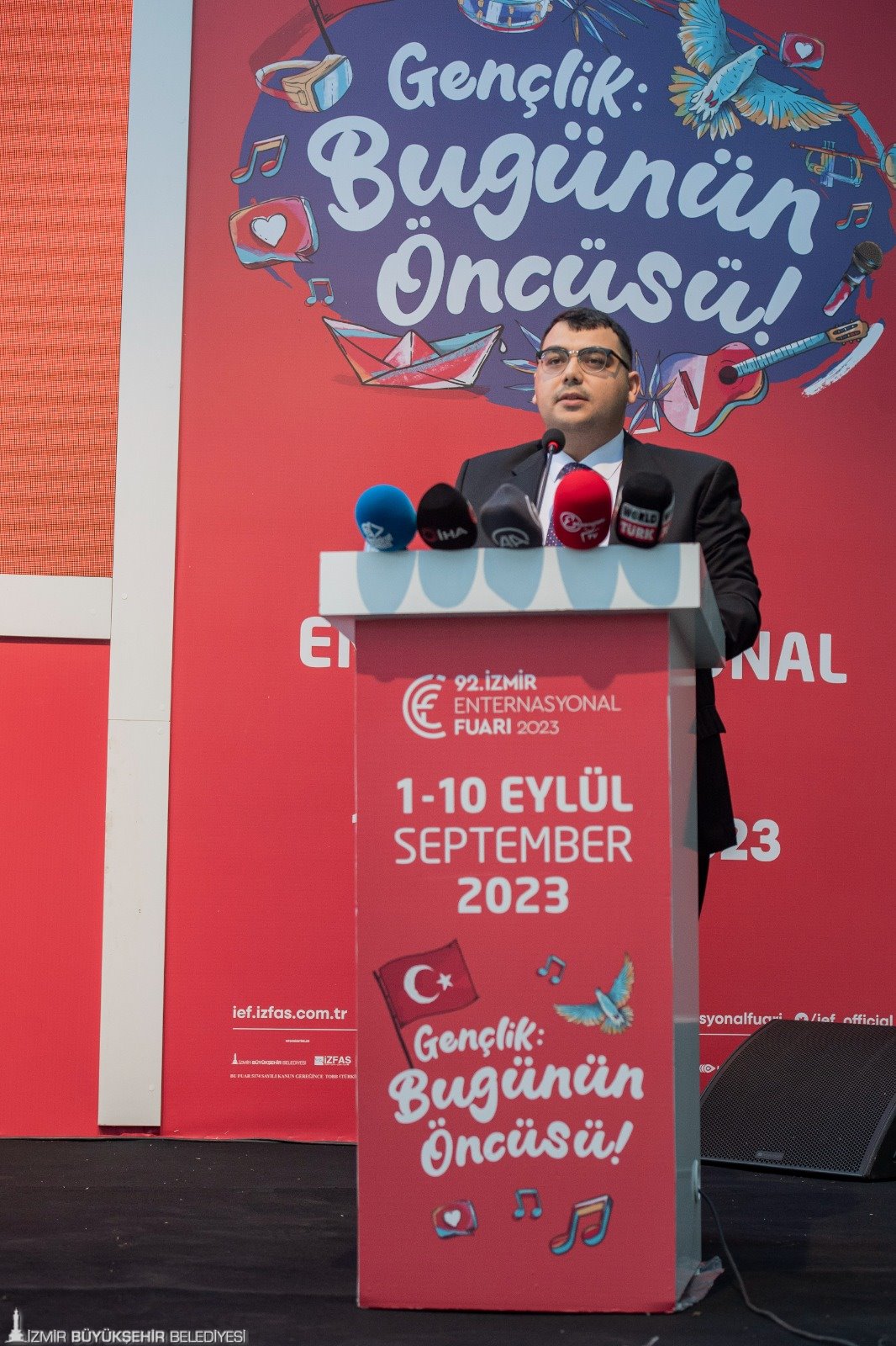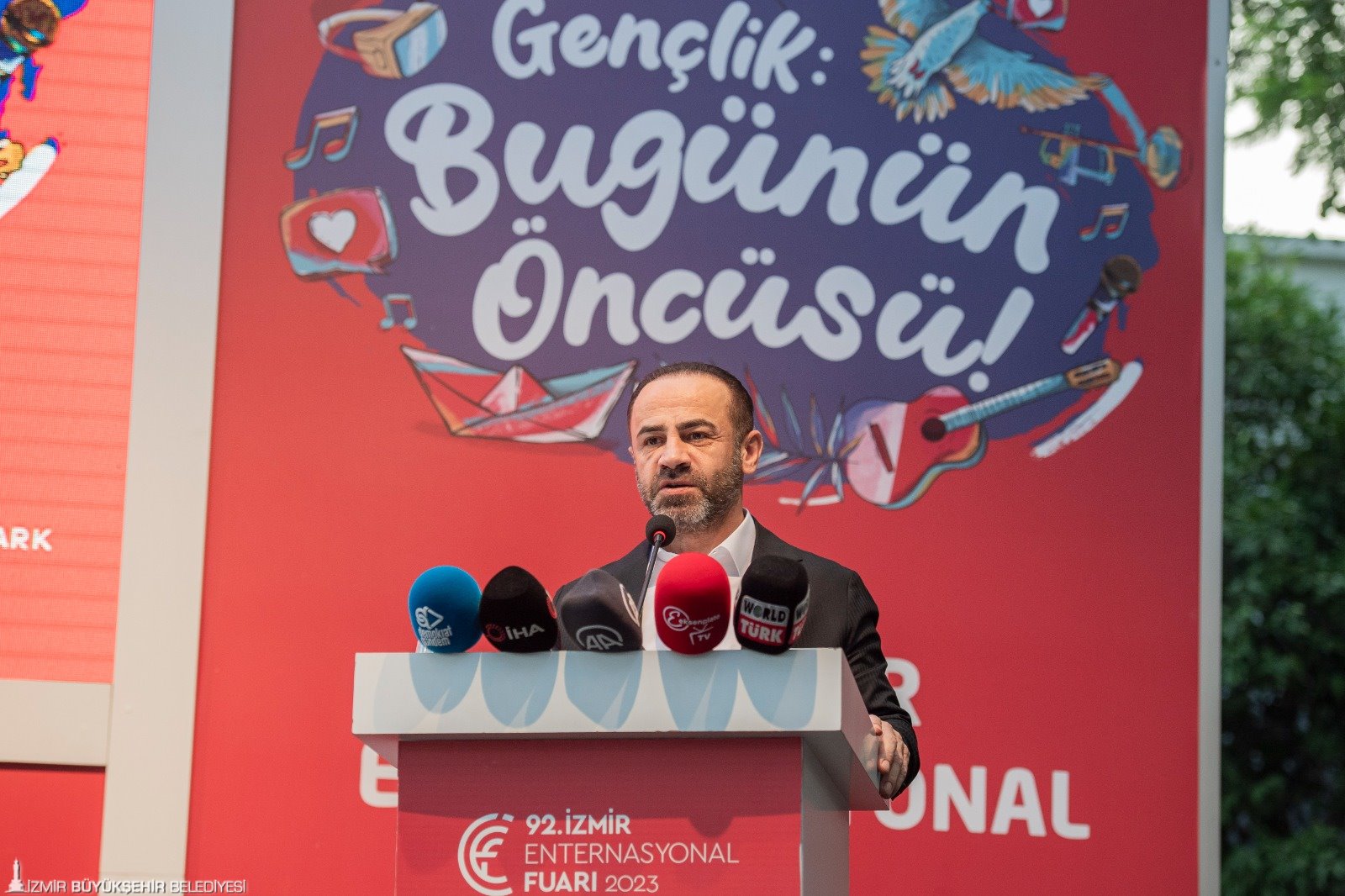 “Türkiye'nin bu karamsar ikliminde, yüksek enflasyon, hayat pahalılığı, zamlar, gerçekten büyük hayal kırıklıklarının, öfkelerin yaşandığı günler. İnsanların geleceğe dair umutlarını kaybetmekte olduğu günler. 92'ncisi en çok ihtiyaç duyduğumuz buluşma olacak. Birbirimizle kucaklaşmaya, vakit geçirmeye, buluşmaya ihtiyacımız var. birbirimizden moral almaya, moral bulmaya ihtiyacımız var. Türkiye'nin her yerindeki gençlere seslenmek istiyorum. 1-10 Eylül arasında İzmir'e gelin. İzmirli akranlarınızla yaşıtlarınızla buluşun. İzmir'in eğlenceli, eğitsel, keyifli 10 gününe eşlik edin. Heyecanlıyız. Fuarımız 92. kez kapılarını açtığında Türkiye'ye umut olsun istiyoruz. Türkiye'nin her yerindeki vatandaşlarımıza, özellikle gençlerimize umut verelim istiyoruz. Bu fuarın teması gençlik ama hedefi umuttur. Umuda çok ihtiyacımız var. Diliyorum ki bu fuar umutların yeniden yeşermesi için, toprakların bereketi ve aydınlık geleceği için ışık tutar. Umutsuzluk karamsarlık rüzgarlarını geride bıraktırır. Geleceğe umutla bakmaya bir fırsat yaratır.”