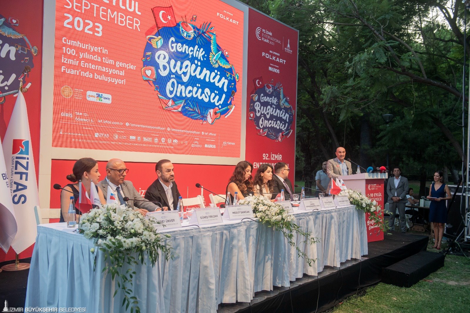 İzmir, 92 yıllık tarihiyle kentin simgelerinden İzmir Enternasyonal Fuarı’na hazırlanıyor. İzmir’in “2026 Avrupa Gençlik Başkenti Finalisti” olmasına özel “gençlik” teması ile 1 - 10 Eylül tarihleri arasında düzenlenecek fuar, Cumhuriyetin 100. yıl dönümünde, “Gençlik: Bugünün öncüsü” sloganıyla gençlerin vizyonunu ve enerjisini merkezine oturtacak. Fuarın açılmasına sayılı günler kala, İsmet İnönü Kültür Merkezi önündeki çim alanda basın toplantısı düzenlendi. İzmir Büyükşehir Belediye Başkanı Tunç Soyer'in ev sahipliğinde yapılan basın toplantısına; Ana Sponsor Folkart'ın Yönetim Kurulu Başkanı Mesut Sancak, Etkinlik Sponsoru Migros'un Kuzey Ege Direktörü Güneş Fırıldak, İzmir Gençlik Belediyesi Başkanı Kaan Levent Bozdağ, Avrupa Gençlik Başkenti Koordinasyon Kurul Üyesi Fulya Yoldaş, İzmir Kent Konseyi Gençlik Meclisi Yürütme Kurulu Üyesi Sedef Ünver, İzmir Büyükşehir Belediyesi Başkan Vekili Mustafa Özuslu, İzmir Büyükşehir Belediyesi Genel Sekreteri Barış Karcı, İzmir Büyükşehir Belediyesi ve bağlı şirketlerin bürokratları ile basın mensupları katıldı.