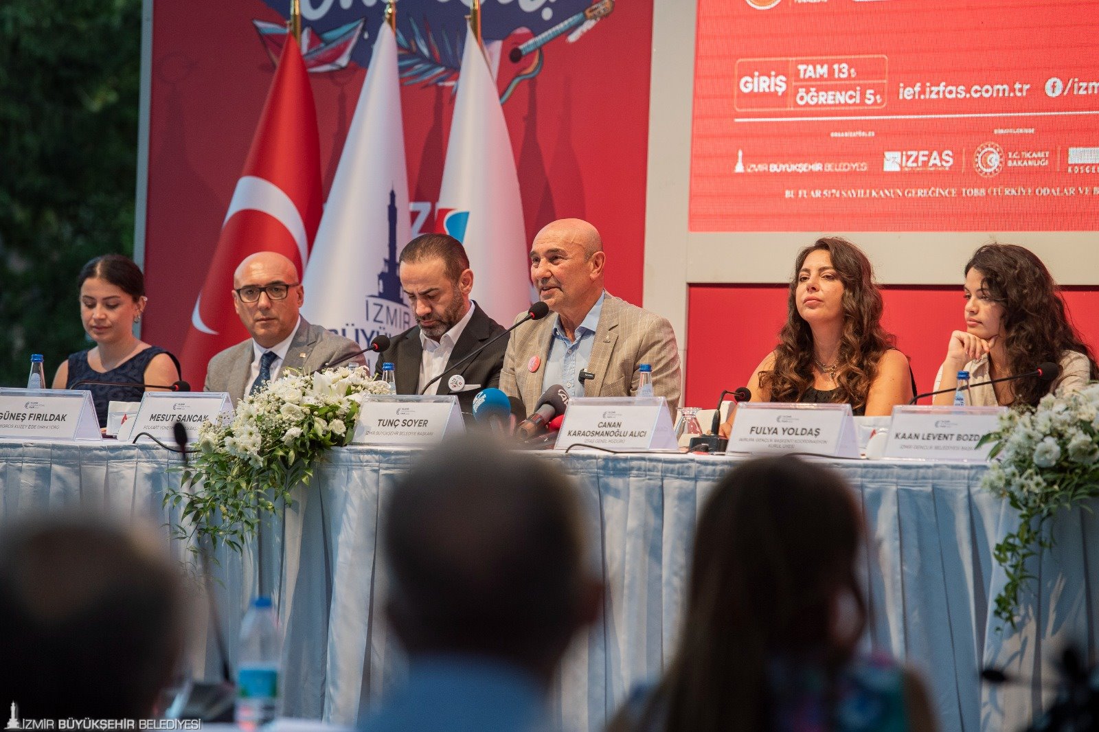 Heyecanlıyız diyerek sözlerine başlayan İzmir Büyükşehir Belediye Başkanı Tunç Soyer, İzmir Enternasyonal Fuarı'nın kronolojisini anlattı. Başkan Tunç Soyer, “92. yılında gençlik temasıyla başlamamızın çok temel bir gerekçesi var. Cumhuriyet ikinci yüzyıla girerken elbette gençlerle birlikte girsin istiyoruz. Bunu taçlandırmak istiyoruz. Gençler heyecanlarını, yeteneklerini, meziyetlerini, umutlarını tekrar burada büyütsünler, birbirlerinden ilham alsınlar, aktarım yapabilsinler, buluşsunlar, kucaklaşsınlar, tanışsınlar istiyoruz. Aynı zamanda 2026 Avrupa Gençlik Başkenti adaylığımız var. Kasım ayında 2026'ya ev sahipliği yapacak, gençlik başkenti olacak şehir belirlenecek. Bir yerde de buna hazırlık olsun istedik. Cumhuriyetin ikinci yüzyılına girerken İEF'nin 92.yılında gençliği çok daha fazla öne çıkarmak istedik. Gençliğin, eğlencenin, sanatın, kültürün yer alacağı çok keyifli bir buluşma olacak. Bu sefer ilk kez bir karnaval tadında kortej planladık. İzmir'de ses getirsin istiyoruz. Başlangıcından son gününe kadar hepimizi keyifli günler bekliyor” dedi.