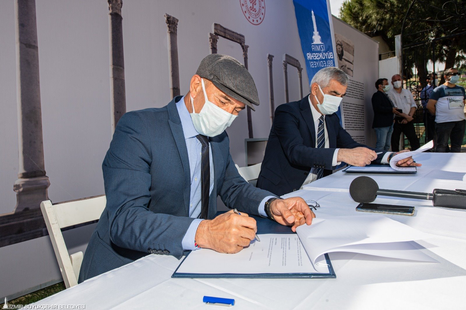 Agora Ören Yerindeki törende İzmir Büyükşehir Belediye Başkanı Tunç Soyer ile Kültür ve Turizm İl Müdürü Murat Karaçanta devir teslim için protokol imzaladı. Romalıların çok önemli kararlarını aldığı bu özel mekânda, Büyükşehir Belediyesi mülkiyetinde bulunan 7339 ada 7-8-9-10 parsellerde yer alan tarihi yapılar aslına uygun olarak restore edildi. Ören yerine gelen ziyaretçiler için ‘Sergi Evi ve Ziyaretçi Bilgilendirme Noktası’ olarak kullanılması amacıyla Kültür ve Turizm Bakanlığı’na tahsisine karar verildi.