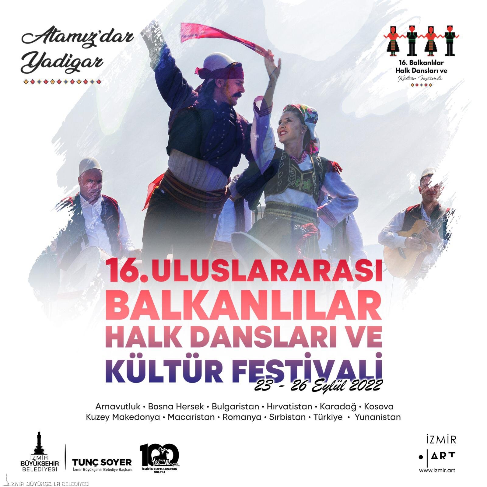 Mustafa Kemal Atatürk’ün öncülüğünde ilk kez 1935 ve 1936 yıllarında düzenlenen “Balkanlılar Halk Dansları Festivali”ni yeniden canlandıran İzmir Büyükşehir Belediyesi, bu yıl yine görkemli bir şölene ev sahipliği yapacak. Atatürk’ün “Yurtta barış, dünyada barış” sözünün ardından başlatılan ve Balkan kardeşliğini pekiştirmeyi amaçlayan festival, bu sene 23-26 Eylül tarihleri arasında yapılacak. Türkiye’nin ev sahibi olduğu festivale; Arnavutluk, Bosna-Hersek, Bulgaristan, Hırvatistan, Karadağ, Kosova, Kuzey Makedonya, Macaristan, Romanya, Sırbistan ve Yunanistan konuk olacak. Festivalde halk oyunları ekiplerinin gösterilerinin yanı sıra konserler, sergiler ve söyleşiler de olacak.
