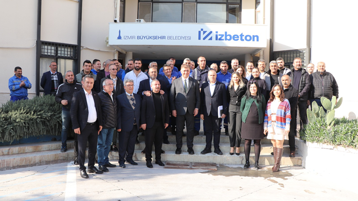 İzmir Büyükşehir Belediye Başkanı Dr. Cemil Tugay, İZBETON Genel Müdürlüğü’nü ziyaret etti. Başkan Tugay’ı İZBETON Genel Müdürü Hüseyin Sezer’in yanı sıra Belediye İş Sendikası 1 No’lu Şube Başkanı Nevzat Yıldırım, 2 No’lu Şube Başkanı Savaş Atalay, 3 No’lu Şube Başkanı Musa Bozkurt, sendika temsilcileri ve işçiler coşkuyla karşıladı. Tugay, burada Hüseyin Sezer’den yapılan çalışmalar hakkında bilgi aldı. Yeni dönemde hayata geçirilecek projelerin de anlatıldığı toplantıda, 2025’in yol haritası çizildi.