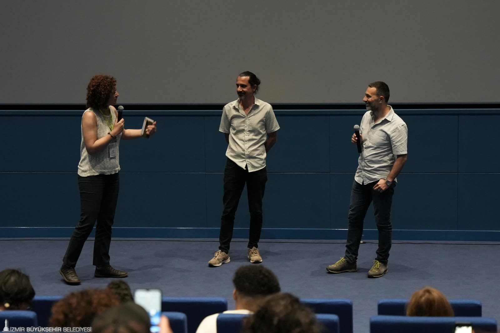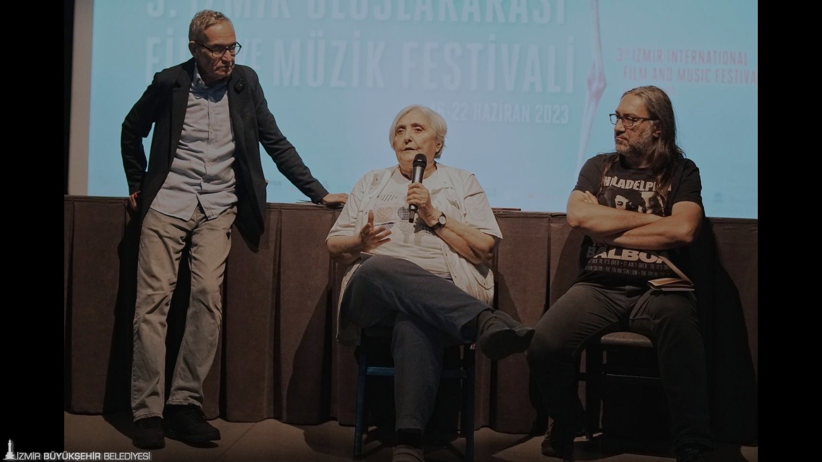 Geçen yıl düzenlenen Müzik Temalı Kısa Film Proje Yarışması’na başvuran 67 projeden arasından seçici kurul tarafından seçilen ve Proje Geliştirme Atölyesine katıldıktan sonra çekimleri tamamlanan 10 film, festival kapsamında Kısaca Müzik programı altında beyazperdedeydi. İzmir Fransız Kültür Merkezi’nde gerçekleşen film gösteriminin ardından Seçici Kurul’da bulunan belgesel film yönetmeni Hilmi Etikan, Prof. Dr. Lale Kabadayı, belgesel yapımcısı Tahsin İşbilen ve festival direktörü Vecdi Sayar izleyicilerle projelere dair görüşlerini paylaştı. Proje ile hedeflerinin sinema yapmayı isteyen gençleri özendirmek olduğuna dikkat çeken Vecdi Sayar, “Çok farklı projeler başvurdu. Seçtiğimiz 10 proje tamamlanmış olarak karşımıza geldi. Filmleri izledikten sonra bütün arkadaşlarımın sinemacı olacağına hatta olduğuna inanıyorum” dedi.