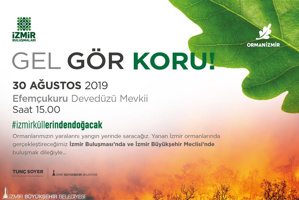 Hepinizi doğamıza sahip çıkmak için 30 Ağustos'ta yanan İzmir ormanlarında gerçekleştireceğimiz İzmir Buluşması'na davet ediyorum. Buluşmamız, Efemçukuru Devedüzü mevkiinde Saat 15.00’te gerçekleşecek.
