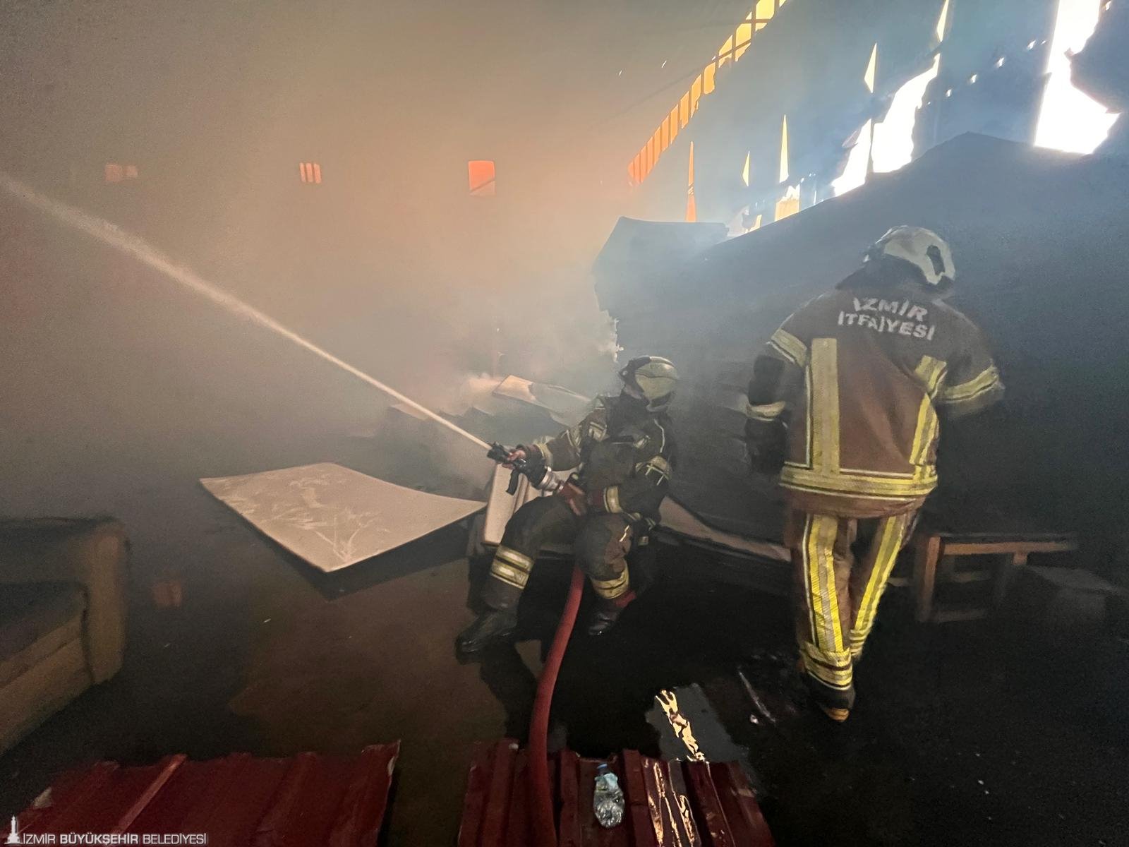 İzmir’in Buca ilçesi Seyhan Mahallesi’nde ahşap mobilya malzemelerinin depolandığı bir iş yerinde saat 03.30’da yangın çıktı. Çevredeki imalathanelerin yangından etkilenmemesi için İzmir Büyükşehir Belediyesi itfaiye ekipleri yoğun çaba harcadı. 41 itfaiye aracı ve 100’ün üzerinde personel müdahale çalışmalarına katıldı. İtfaiye Dairesi Başkan Vekili Ahmet Karaman, koordineli ve yoğun çalışmayla alevlerin yayılmasının önüne geçildiğini söyledi.