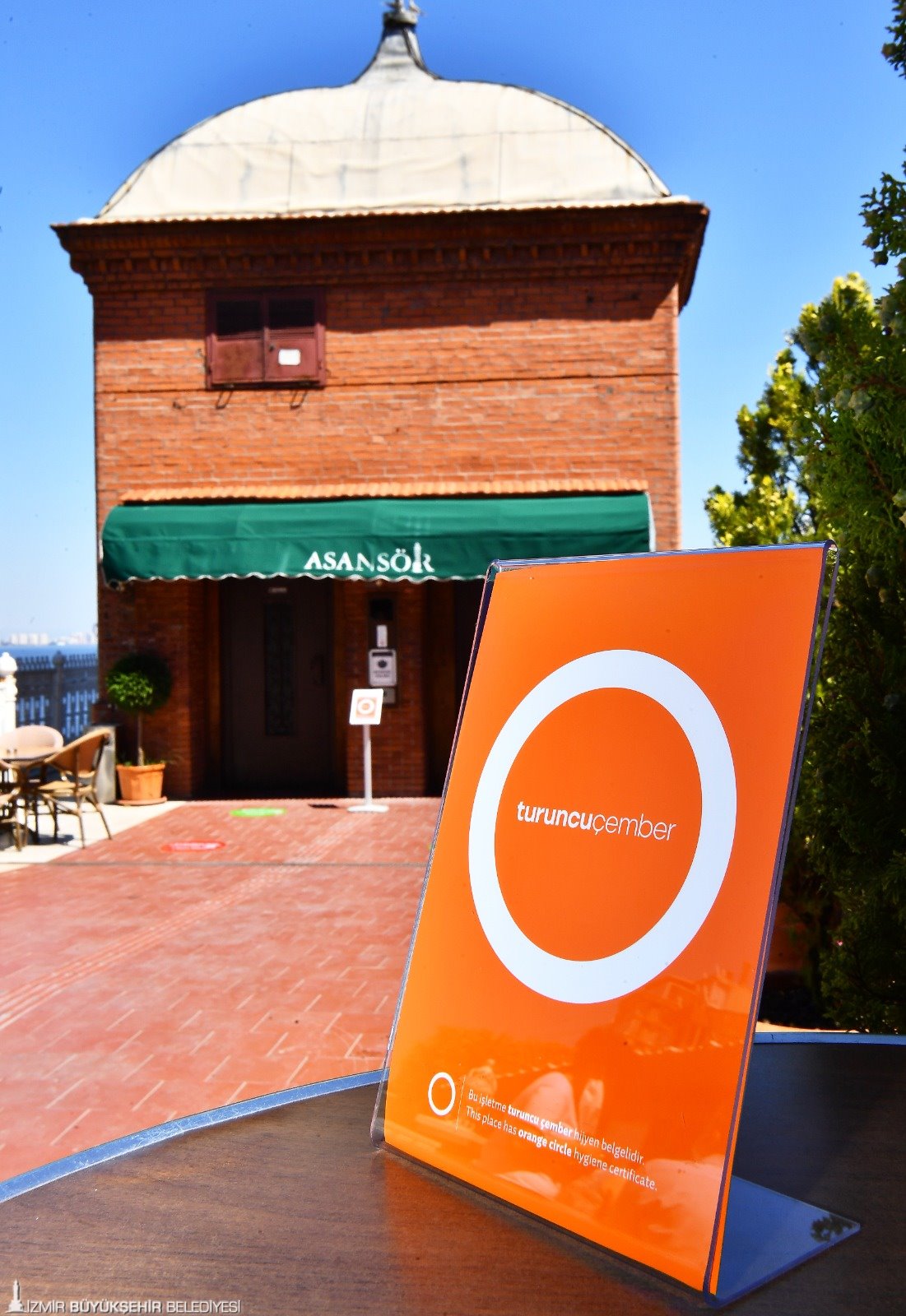 İzmirlilerin güven çemberinin içine alınması ve turizm faaliyetlerinin sağlıklı bir şekilde devam edebilmesi için hayata geçirilen Turuncu Çember uygulaması büyüyor. Büyükşehir Belediyesi’nin iştiraki Grand Plaza A.Ş’ye ait Tarihi Havagazı Fabrikası Gençlik Yerleşkesi’ndeki Sanat Kafe, İzmir Sanat, Tarihi Asansör Restoran, Yasemin Kafe, Teleferik tesisi, Sasalı Doğal Yaşam Parkı’nın içinde bulunan Kuğulu ve Develi Kafe ile Kemeraltı Balıkçılar Meydanı’ndaki Halkın Bakkalı artık Turuncu Çember’e sahip.