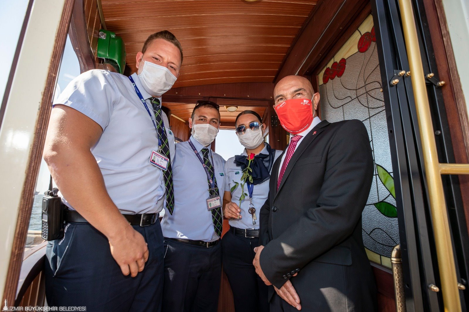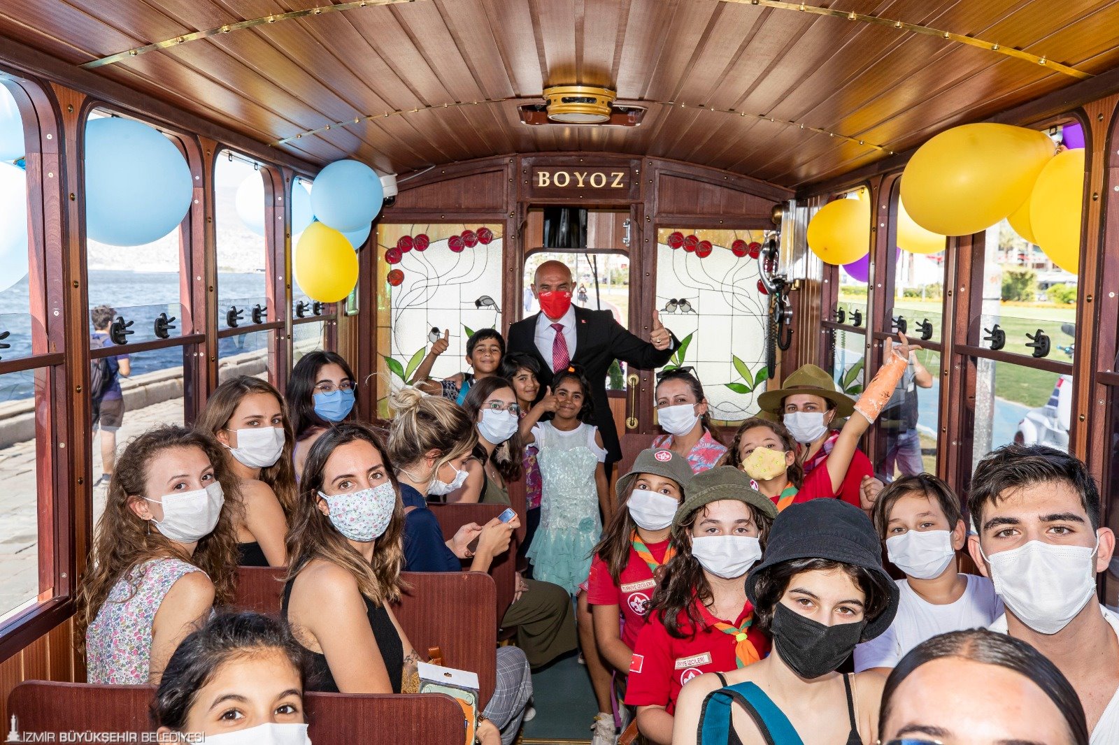 Konuşmaların ardından İzmir Büyükşehir Belediye Başkanı Tunç Soyer konuklarla birlikte nostaljik tramvayın ilk seferine katıldı.