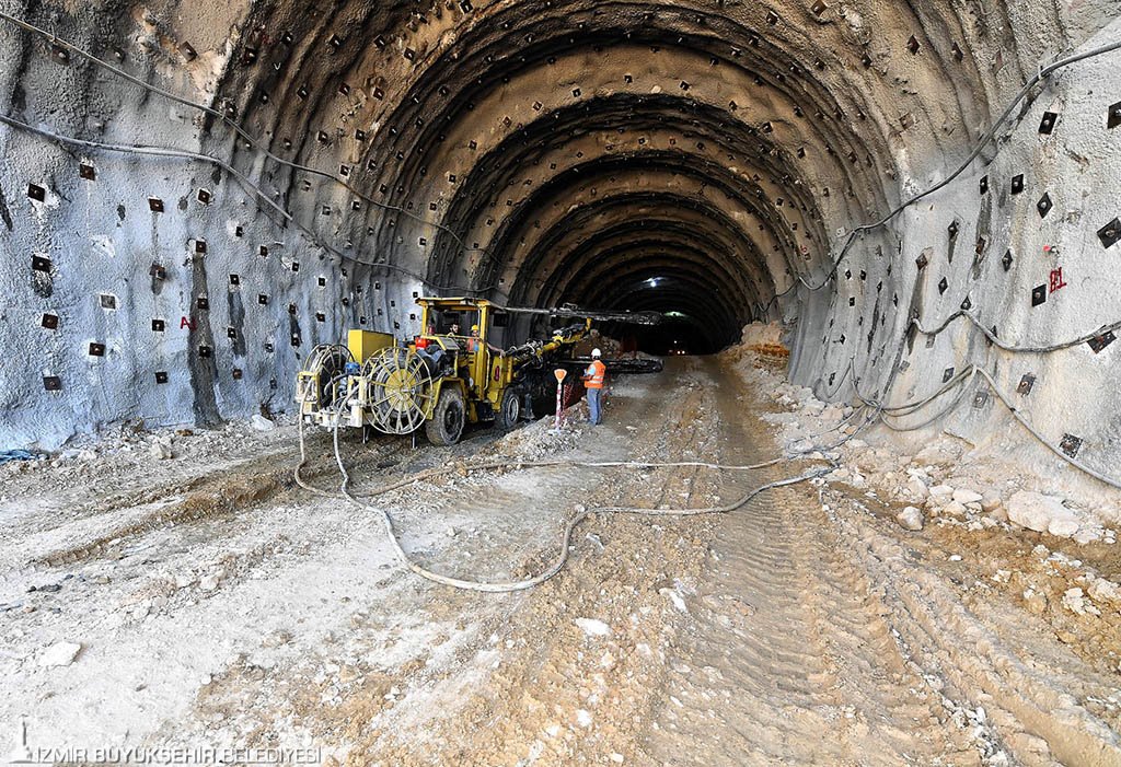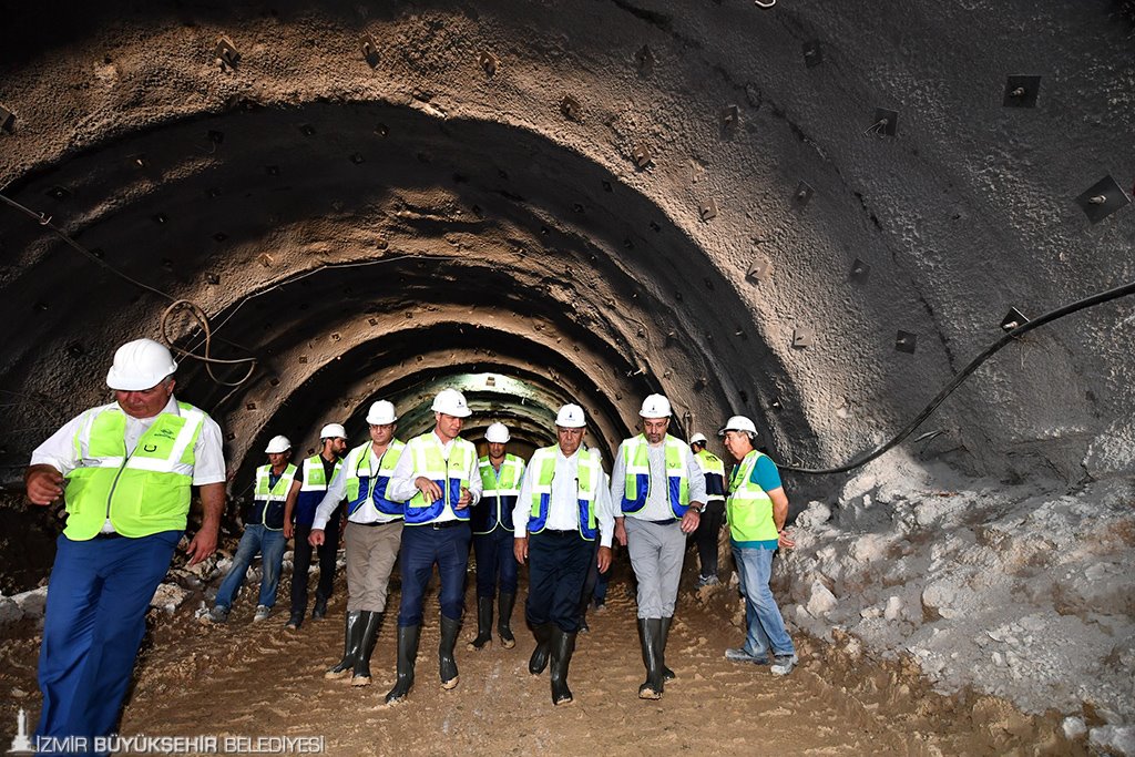 Buca şantiyesindeki kazı çalışmaları büyük bir titizlikle sürdürülürken, en kısa süre içinde Bornova tarafından da tünel kazma işlemlerine başlanacağı bildirildi. Buca yönünde başlanan tünel çalışmaları, sol tüpte 15.50 metre sağ tüpte ise 13.50 metre derinlikte yürütülüyor. Maksimum derinliğin bazı bölgelerde 70 metreye kadar inmesi planlanıyor. Tünelde 43 iş makinesiyle birlikte 84 işçi, vardiyalı olarak 7x24 çalışıyor. Tünel, “Yeni Avusturya Tünel Açma Yöntemi” (NATM) ile yapılıyor. Projede günlük geoteknik ölçümlerle olası toprak hareketlilikleri de yakından takip ediliyor.