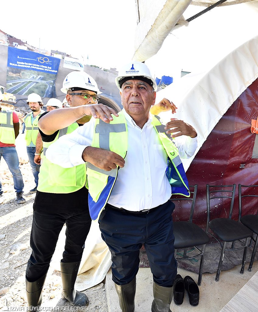 İzmir Büyükşehir Belediye Başkanı Aziz Kocaoğlu, Buca'daki Homeros Bulvarı'nı Bornova'daki Otogar'a bağlayacak "ekspres yol" projesinin "derin çift tüp tünel" kazı çalışmalarını yerinde inceledi. Çizmeleri giyip tünelin içine giren Başkan Kocaoğlu, inşaat ekibiyle yaptığı görüşmede, özellikle güvenli çalışmanın altını çizdi. Başkan Kocaoğlu, İzmir'in en uzun tüneli, viyadük ve karayolu geçitlerinden oluşan toplam 7 kilometrelik güzergahın, Konak-Buca-Bornova bağlantısını sağlayacak önemli bir ulaşım yatırımı olduğunu söyledi.
