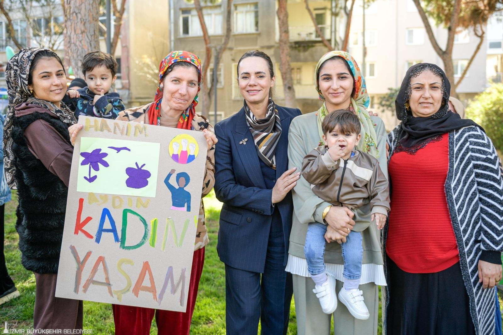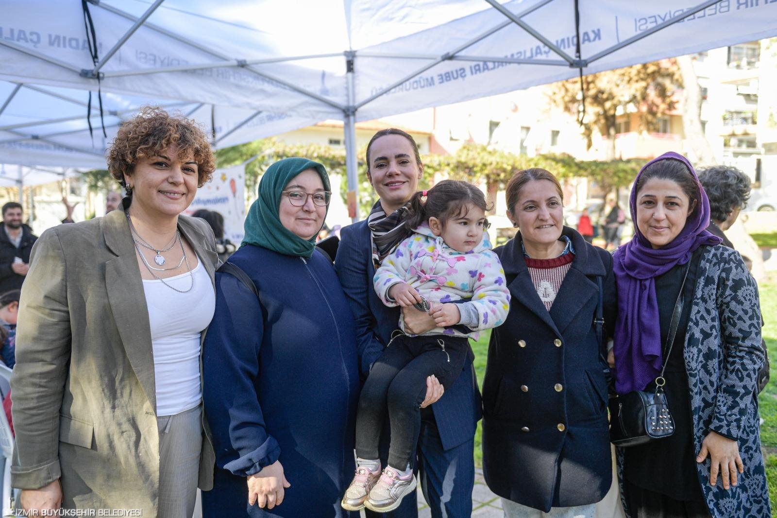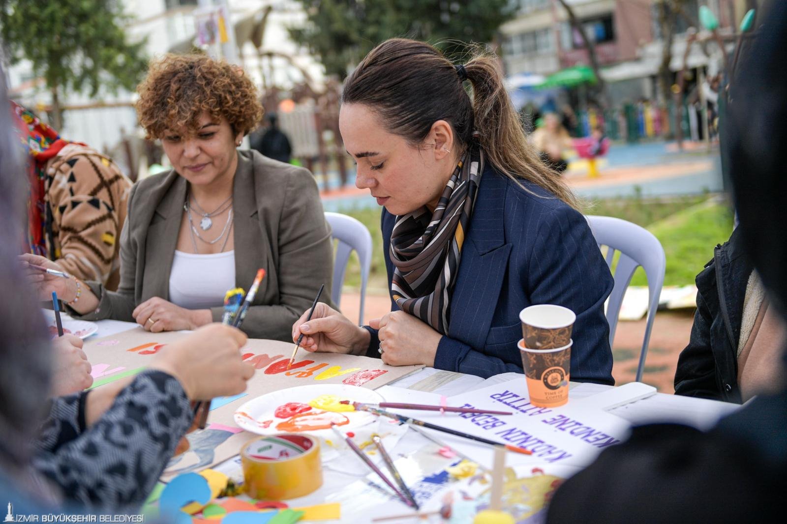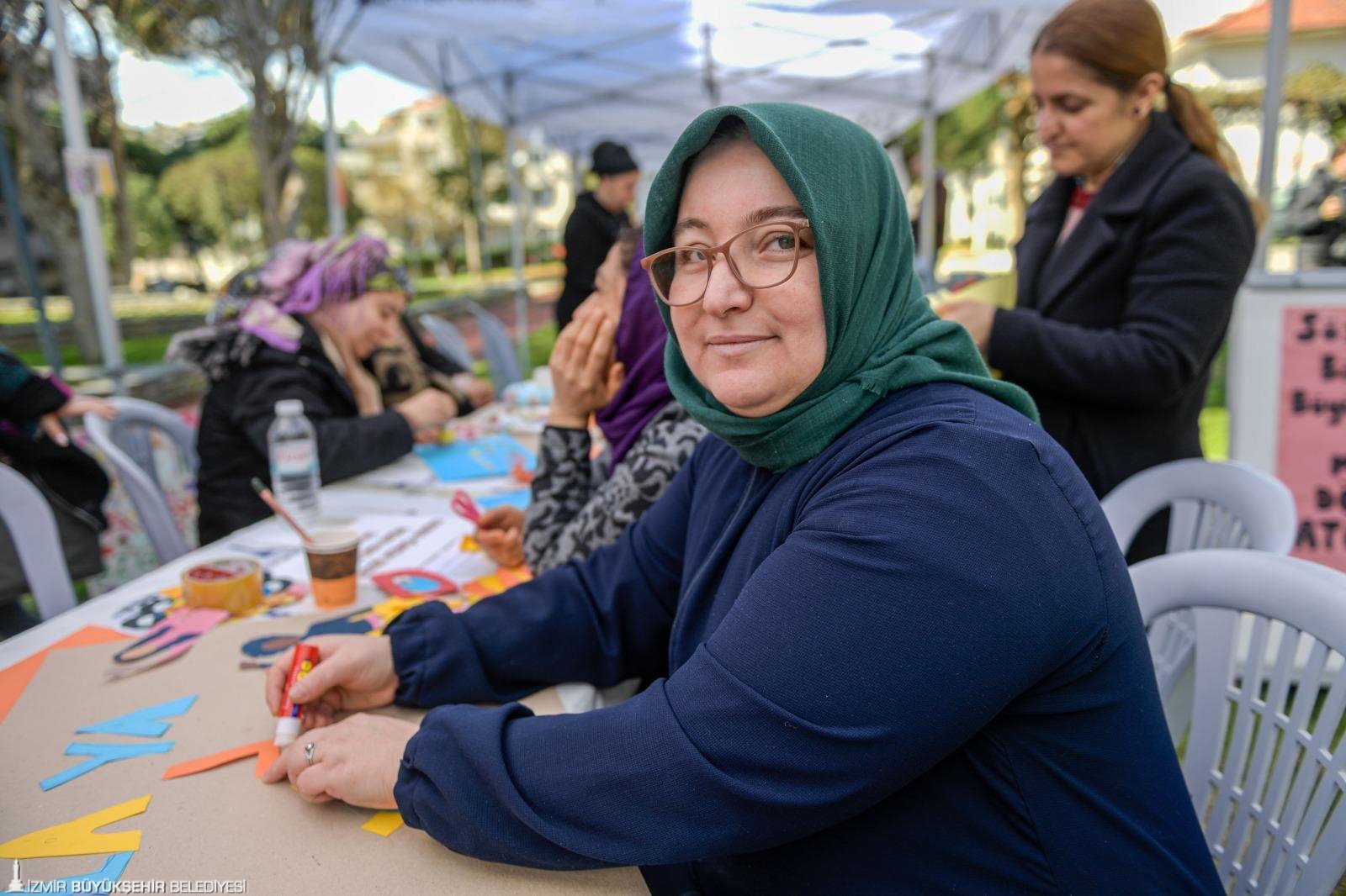 Etkinliğe katılan Fatime İnal “Kadın haklarının savunucusuyuz. Burada pankartları eğlenerek yapıyoruz. Çok mutluyuz, iyi ki böyle etkinlikler var” derken, Sadegül Bozbala da “Kadın sağlığı ile ilgili konuşuyoruz, çocuklar oynuyor. Kadınlarla ilgili pankart yapıyoruz. Çeşit çeşit çiçekler, kelebekler çiziyoruz. Dünya Kadınlar Günü’nü kutluyoruz. Kadına şiddete ‘hayır’ diyoruz. İzmir Büyükşehir Belediyesi’ne etkinlikler için teşekkür ediyoruz” dedi.