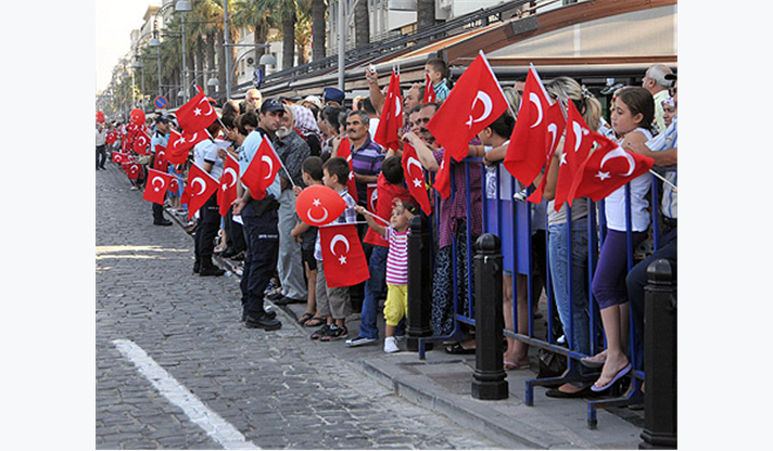 9 Eylül İzmir’in düşman işgalinden kurtuluşunun 89. yılı törenleri, Cumhuriyet Meydanı’ndaki resmi geçit töreniyle devam etti. Ulaştırma Bakanı Binali Yıldırım, İzmir Milletvekilleri, İzmir Valisi Cahit Kıraç ve eşi, Ege Ordusu ve Garnizon Komutanı Orgeneral Abdullah Atay ve eşi, İzmir Büyükşehir Belediye Başkanı Aziz Kocaoğlu ve eşinin yanısıra, siyasi partiler, resmi kurumlar, meslek örgütleri, sivil toplum kuruluşlarının temsilcileriyle çok sayıda vatandaşın katıldığı tören; Vali Cahit Kıraç, Ege Ordusu ve Garnizon Komutanı Orgeneral Atay ile Büyükşehir Belediye Başkanı Aziz Kocaoğlu’nun halkı selamlamasıyla başladı. Başkan Kocaoğlu törende yaptığı konuşmada, “Ülkemizin yalnızca kurtuluşunda değil, kuruluşunda da simge bir kent sayılan İzmir, bu nedenledir ki, Türkiye Cumhuriyeti’nin ilerlemesinde, her zaman önemli görevler üstlenmiş ve başarıyla yerine getirmiş; Türkiye Cumhuriyeti’nin temel ve vazgeçilmez ilkelerinin değişmez sembolü olmuştur” diye konuştu.