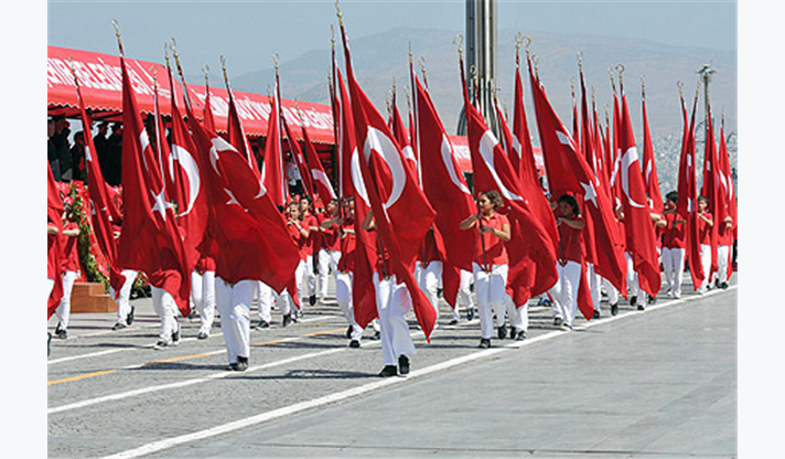 Kurtuluş Savaşı ve ardından kazanılan zaferin bütün dünyaya örnek olduğunu söyleyen Başkan Aziz Kocaoğlu, “Elbette büyük coşku ve gurur içindeyiz. Ancak o acıları bir daha yaşamamak için, ayrıyı - gayrıyı bir kenara bırakıp her bakımdan güçlü ve birlik olmak zorundayız” dedi. Başkan Kocaoğlu sözlerini şöyle sürdürdü: “Yurttaşlık, kardeşlik, dayanışma ve birlik bağları güçlü, yurtta ve dünyada barış için mücadele veren, çağdaş bir Türkiye hedefinden asla vazgeçmemeliyiz. Bize, bin bedel ödenerek emanet edilmiş bu toprakları, gelecek kuşaklara “övünecekleri ve içinde yaşamaktan mutlu olacakları” bir kent, bir ülke olarak bırakmanın, tarihi olduğu kadar ahlaki ve vicdani bir ödev, bir yurtseverlik gereği olduğunu unutmamalıyız. Ülkemizin bulunduğu coğrafyayı saran ateş çemberinden yara almadan, aksine güçlü ve dimdik çıkmak zorundayız. Bunun formülü de, birlik ve beraberliktir. Farklı renklerimizin zenginlik olarak görülmesi, toplumsal barışın korunması, ayrımcılığın reddedilip insana öncelik verilmesi, tüm vatandaşlarımızın refah içinde fırsat eşitliğinden yararlanması; özü Mevlana, özü Yunus, özü Hacı Bektaş, özü Şeyh Bedrettin olan ortak kültürümüzün yeniden hatırlatılması, Atatürk’ün çizdiği çağdaş ve evrensel rotanın tali yollara sapmadan takip edilmesidir. Kimse başka bir formül aramaya kalkışmasın”.