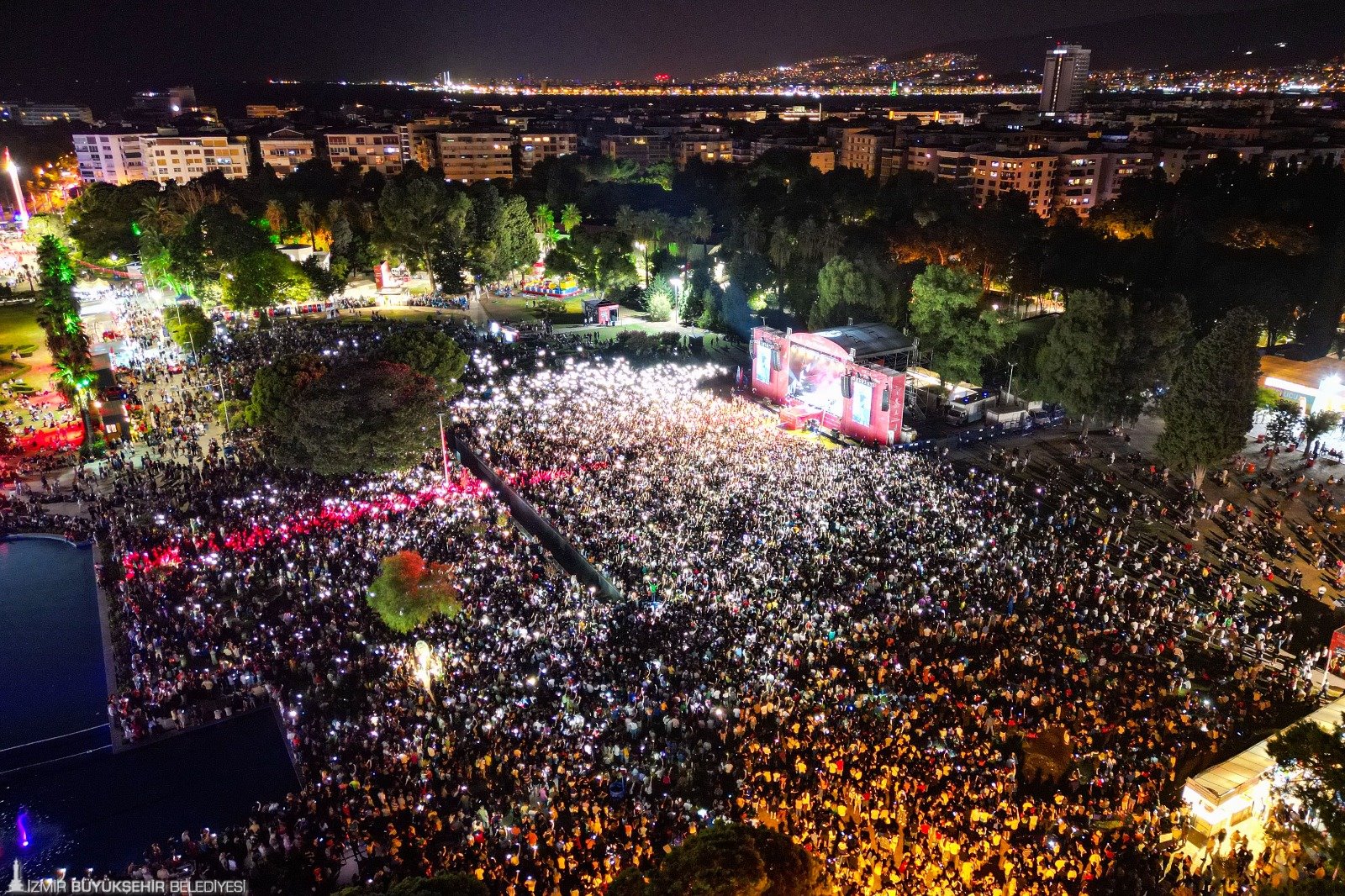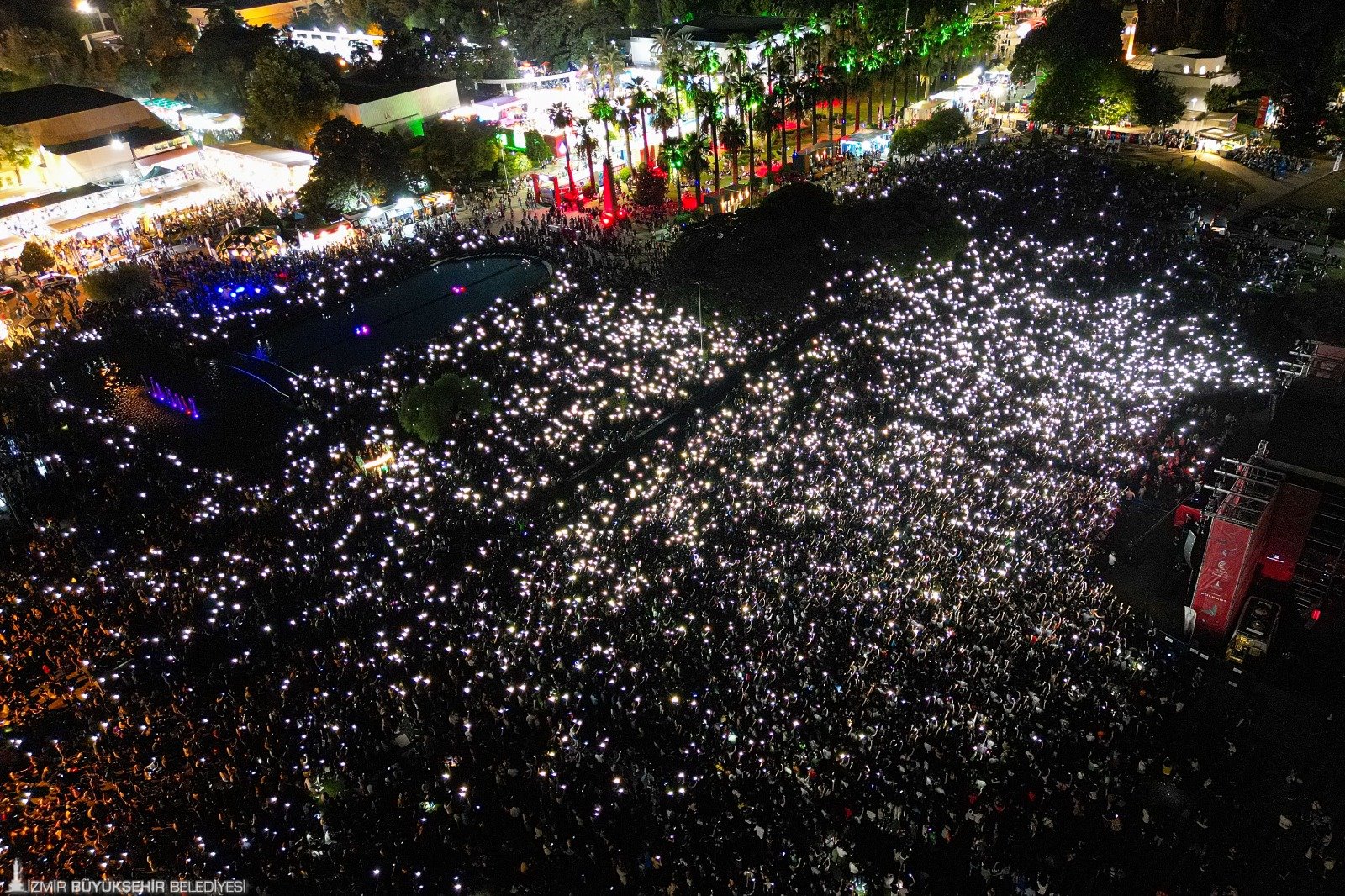 İzmir’in Avrupa Gençlik Başkenti finalistliğine özel olarak “Gençlik” temasıyla düzenlenen İzmir Enternasyonal Fuarı, sanat ve eğlence dolu etkinlikleriyle misafirlerini ağırlamaya devam ediyor. Fuarın vazgeçilmezi olan Çim Konserleri’nin üçüncü konuğu Türk pop müziğinin ünlü ismi Serdar Ortaç oldu. Mesafe isimli şarkısıyla sahneye çıkan ve sık sık seyirci ile sohbet eden Serdar Ortaç, “Bu gece; sağlığıma kavuştuğuma göre artık ölmeden önce son konserim. O yüzden bir şey söyleyeceğim, bu gece, benim için bana unutulmaz bir gece yaşatın. 1994 Karabiberim’den bugüne kadar bütün şarkılarını dinleyeceksiniz, hepsini” dedi. Konser alanını dolduran fuar ziyaretçileri, Serdar Ortaç’ın her biri klasik haline gelen şarkılarına hep bir ağızdan eşlik etti. Serdar Ortaç, 1994 yılındaki ilk albümünden bugüne kadar olan şarkılarını yaklaşık 2,5 saat boyunca dinleyicileriyle birlikte seslendirdi. Çim Konserleri Sahnesi’nde; 4 Eylül’de Volkan Konak, 5 Eylül’de Sibel Can, 6 Eylül’de Yüzyüzeyken Konuşuruz, 7 Eylül’de Funda Arar, 8 Eylül’de Athena, 9 Eylül’de Tan Taşçı, 10 Eylül’de ise Haluk Levent sahne alacak. Konserler saat 21.00’de başlayacak.