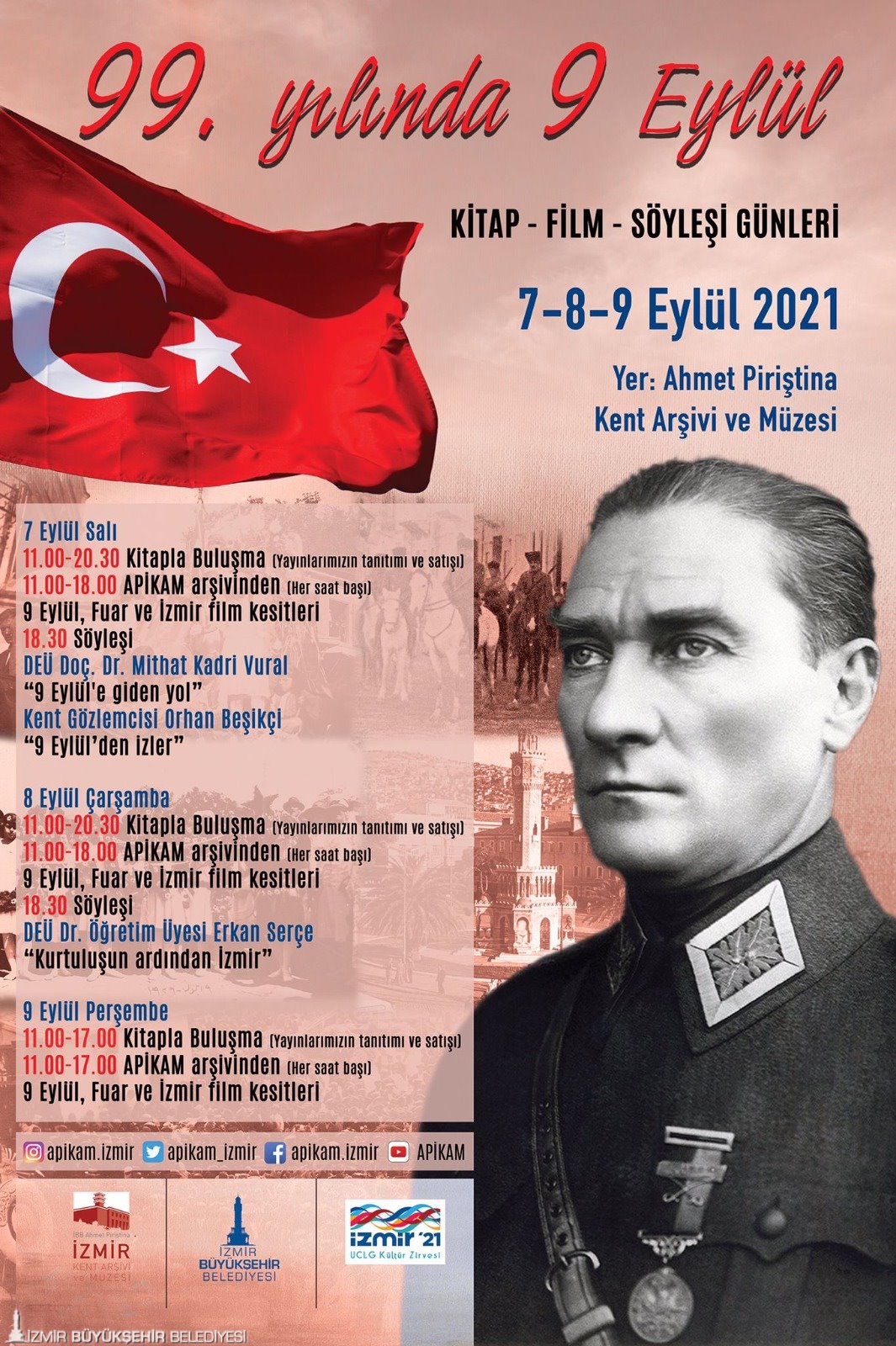 7 Eylül Salı günü saat 18.30’da Doç. Dr. Mithat Kadri Vural’ın “9 Eylül’e Giden Yol” başlıklı, Kent Gözlemcisi Orhan Beşikçi’nin ise “9 Eylül’den İzler” başlıklı sunumuyla APİKAM’da bir söyleşi düzenlenecek.