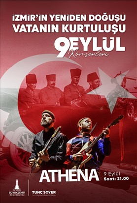 İzmir'in 99. yıl kurtuluş coşkusu, 9 Eylül akşamında zirve yapacak. İzmir Büyükşehir Belediyesi Bandosu eşliğinde saat 20.15’de Cumhuriyet Meydanı'ndan başlayacak Fener Alayı yürüyüşü sırasında İzmirliler, ellerindeki Türk bayraklarıyla Kordon'u adeta "gelincik tarlasına" çevirecek. Gündoğdu Meydanı'na kadar devam edecek Fener Alayı'nın ardından, saat 21.00'da, Türk Rock Müziğinin efsane grubu Athena 9 Eylül coşkusunu zirveye taşıyacak. Konser sırasında Flashmob zeybek gösterisi de düzenlenecek. Gece, İzmir Marşı eşliğinde lazer ve ışık gösterileriyle devam edecek. Ayrıca Bornova Aşık Veysel Açıkhava Tiyatrosu’nda 20 yerel halk dansları ekibi saat 21.00’da sahne alacak. Aynı saatte ise Menderesliler 19 Mayıs Stadı’nda Nebil Özgentürk’ün tarihsel video belgesel sunumuyla Anadolu Ateşi Dans Gösterisi’ni izleyecek.