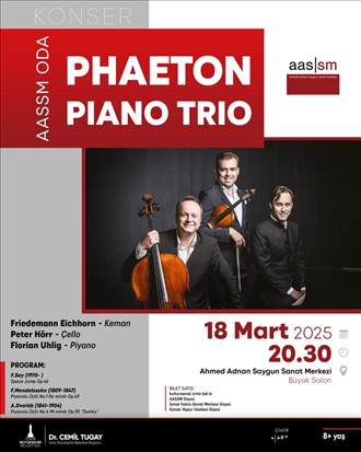Uluslararası alanda tanınmış üç başarılı Alman sanatçı tarafından kurulan Phaeton Piano Trio, 18 Mart Salı günü Ahmed Adnan Saygun Sanat Merkezi’nde (AASSM) unutulmaz bir müzik ziyafeti sunacak.