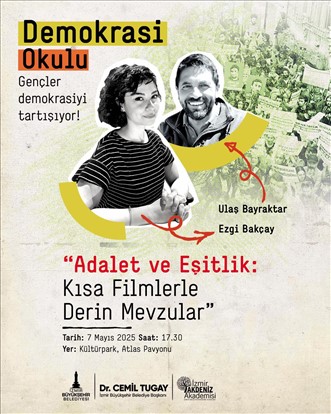 Demokrasi Okulu’nun ilk dersi akademisyen Ulaş Bayraktar ve Ezgi Bakçay tarafından 7 Mayıs 2025 Çarşamba 17.30-20.00 arasında Kültürpark Atlas Pavyonu’nda verilecek. Dersin konusu "Adalet ve Eşitlik: Kısa Filmlerle Derin Mevzular” olacak.