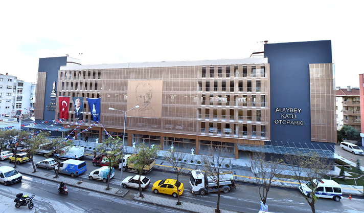 Türkiye’de yerel yönetimlerin yaptığı ilk tam otomatik katlı otoparkı olan Alsancak Otoparkı ile Hatay Pazaryeri Katlı Otoparkı, Atatürk Kapalı Spor Salonu Önü Yeraltı Otoparkı, Bahriye Üçok Yeraltı Otoparkı, Kültürpark Yeraltı Otoparkı ve Buca Kasaplar Meydanı Yeraltı Otoparkı gibi önemli yatırımları kente kazandıran Büyükşehir Belediyesi, şimdi de Karşıyaka’nın otopark ihtiyacına cevap veren yeni bir projeyi daha hayata geçirdi. Alaybey’de 630 kapasiteli 7 katlı otopark, İzmir Büyükşehir Belediye Başkanı Aziz Kocaoğlu tarafından törenle hizmete açıldı.