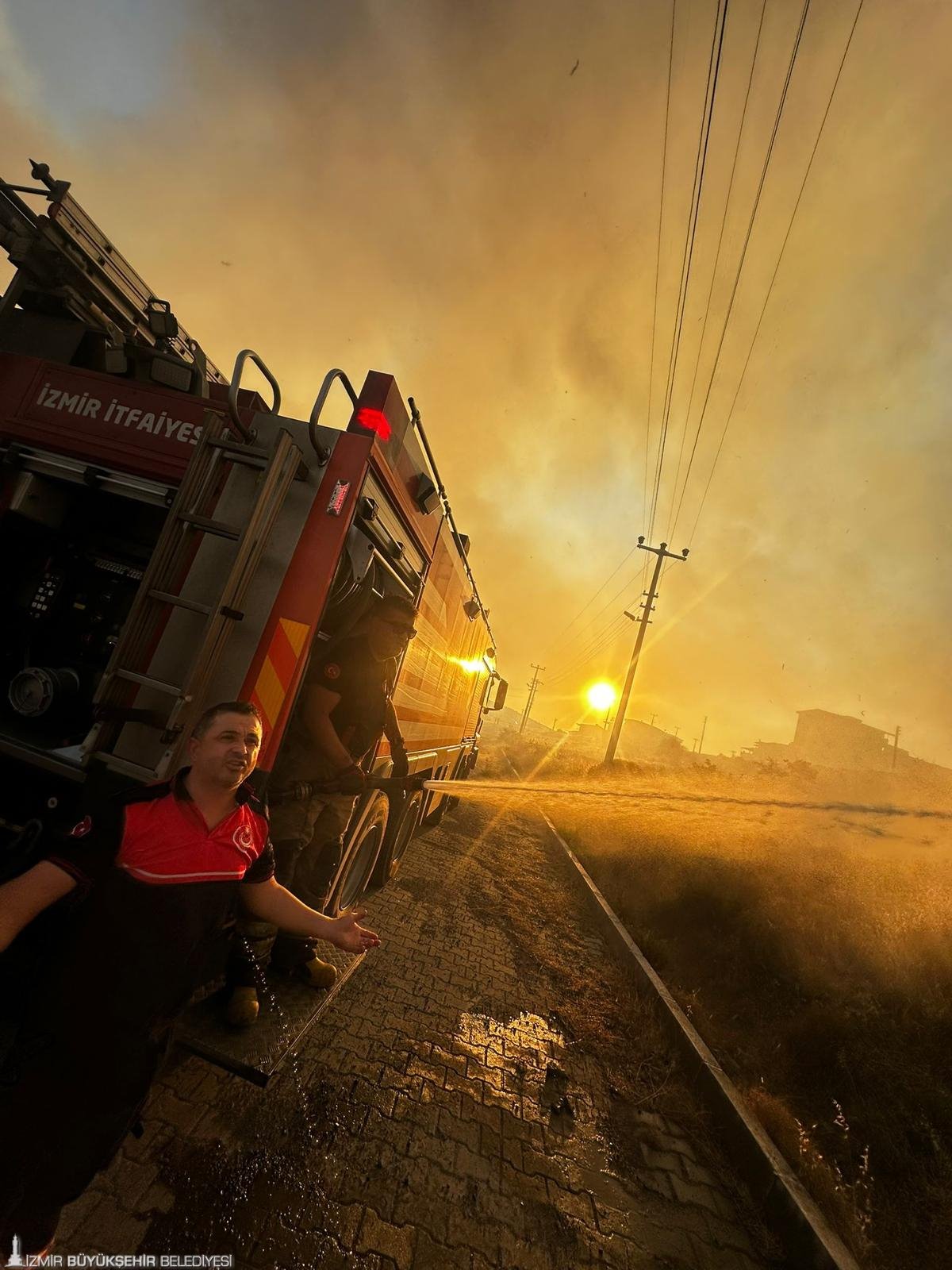 İzmir Büyükşehir Belediyesi İtfaiye Dairesi Başkanlığı, Aliağa Hacıömerli Mahallesi'nde makilik alanda 19.00'da başlayan ve rüzgarın etkisiyle Çaltılıdere Mahallesi'ne ilerleyen yangını kontrol altına almak için seferber oldu. Sahada 7 itfaiye aracı ve 23 personel ile yürütülen çalışmalara Aliağa Belediyesi 5, İZSU 1 su tankeri ile destek veriyor. Orman İtfaiyesi'ne ait 5 arazöz ve 2 helikopter de yangın söndürme çalışmalarında görev alıyor. Ekiplerin müdahalesi sayesinde yangının Çaltılıdere Mahallesi'ne ulaşması engellendi. Yoğun dumandan Çanakkale Asfaltı Caddesi'nde trafik sıkışıklığı yaşandı. Ekipler bölgede çalışmalarını sürdürüyor. Urla Camiatik Mahallesi'nde ormanlık alanda çıkan yangını kontrol altına almak için İtfaiye ve Orman Bölge Müdürlüğü ekiplerinin çalışmaları ise devam ediyor.