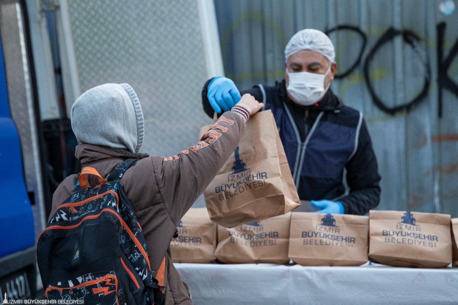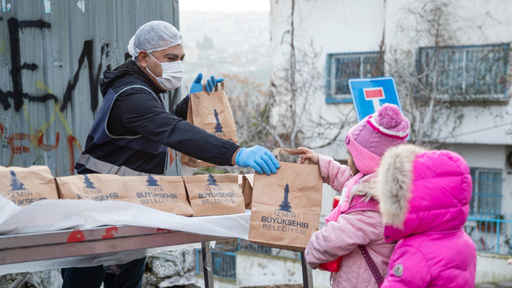 İzmir Büyükşehir Belediyesi’nin sosyal belediyecilik anlayışı doğrultusunda hayata geçirilen çalışmalara bir yenisi daha eklendi. Kentteki ihtiyaç sahibi ailelerin yanında olan Büyükşehir Belediyesi bu kez ilkokul öğrencilerine beslenme paketi dağıtmaya başladı. İhtiyaç olduğu tespit edilen okullarda öğrenciler hizmetten yararlanıyor.