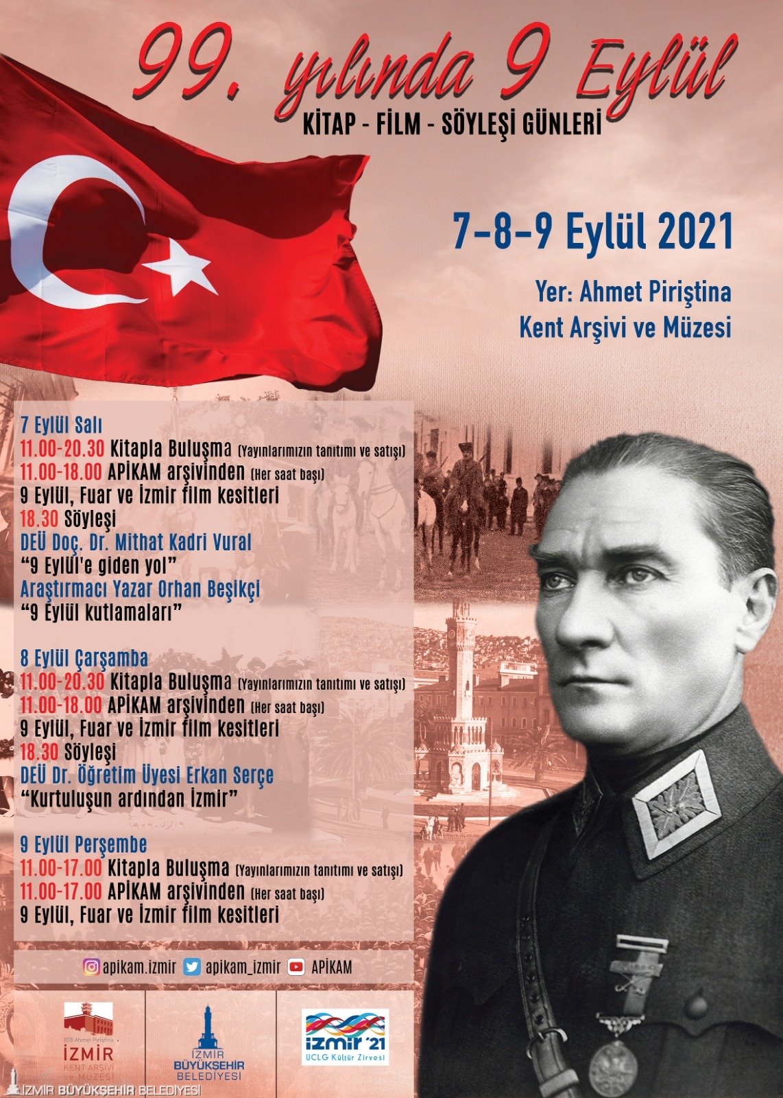 Milli mücadelenin zaferle sonuçlandığı ve Türkiye Cumhuriyeti Devleti'nin temellerinin atıldığı 9 Eylül 1922'nin 99'uncu yıl dönümü kapsamında APİKAM'da üç gün boyunca söyleşiler, film gösterimleri ve kitap günleri yapılacak.