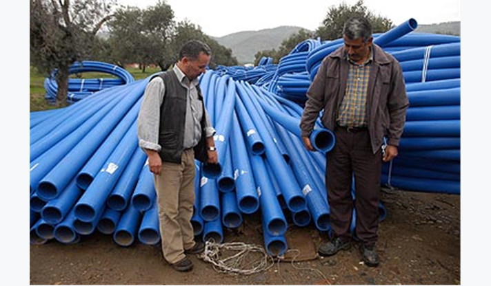 Halka sağlıklı içme suyu sunmak, su kayıplarını azaltmak, ileride yaşanabilecek ciddi su sıkıntısını önlemek için ilçe, belde ve köylerde yatırım hamlesi başlattıklarını açıklayan İzmir Büyükşehir Belediye Başkanı Aziz Kocaoğlu, “2008 ve 2009 yıllarında sınırlarımıza dahil olan ilçe ve beldelerde, eşitlikçi hizmet anlayışımızla 885 kilometre uzunluğunda içme suyu şebekesi döşeyeceğiz. Şebeke yenileme çalışmaları sırasında, zamanında yapılan asbest boruların da tamamını değiştireceğiz. Böylelikle yıllardır altyapı sorunlarını çözememiş olan bölgelerimizi hem modern altyapıya kavuşturacağız hem de vatandaşlarımızın kesintisiz ve sağlıklı su içmesini sağlayacağız. Bize bağlanan yeni yerleşimleri, 25 yıl sonrasının ihtiyaçlarına yanıt verebilecek içme suyu sistemine kavuşturacağız” diye konuştu.